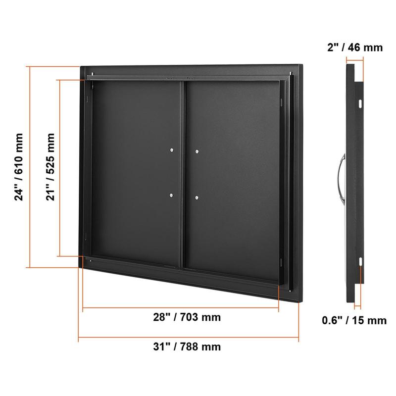 • Precision Opening: Overall dimensions: 788x610x46 mm / 31x24x2 inches, installation size: 28x21inch/703x525mm, it is recommended to reserve an additional 0.08inch/2mm on this basis for better operation. The door is designed specifically for outdoor kitchens and barbecue islands, adding an elegant touch to your cooking area. With precise dimensions, it is easy to process, install, or dismantle. Available in various sizes and styles, it is perfect for indoor/outdoor kitchens and all other outdoor weather conditions.