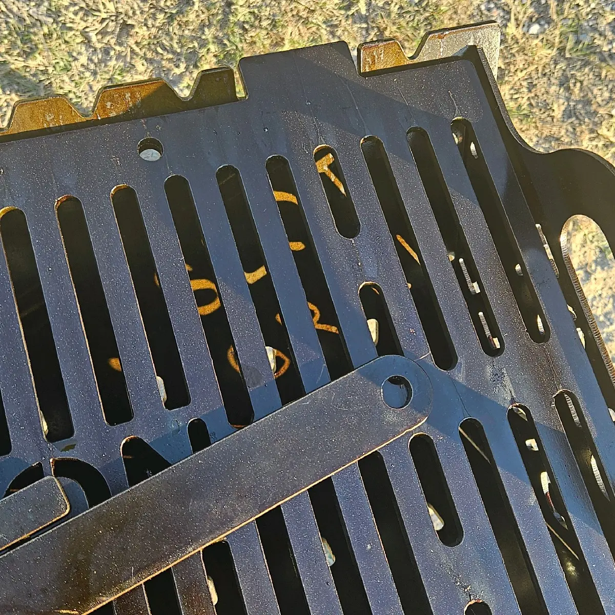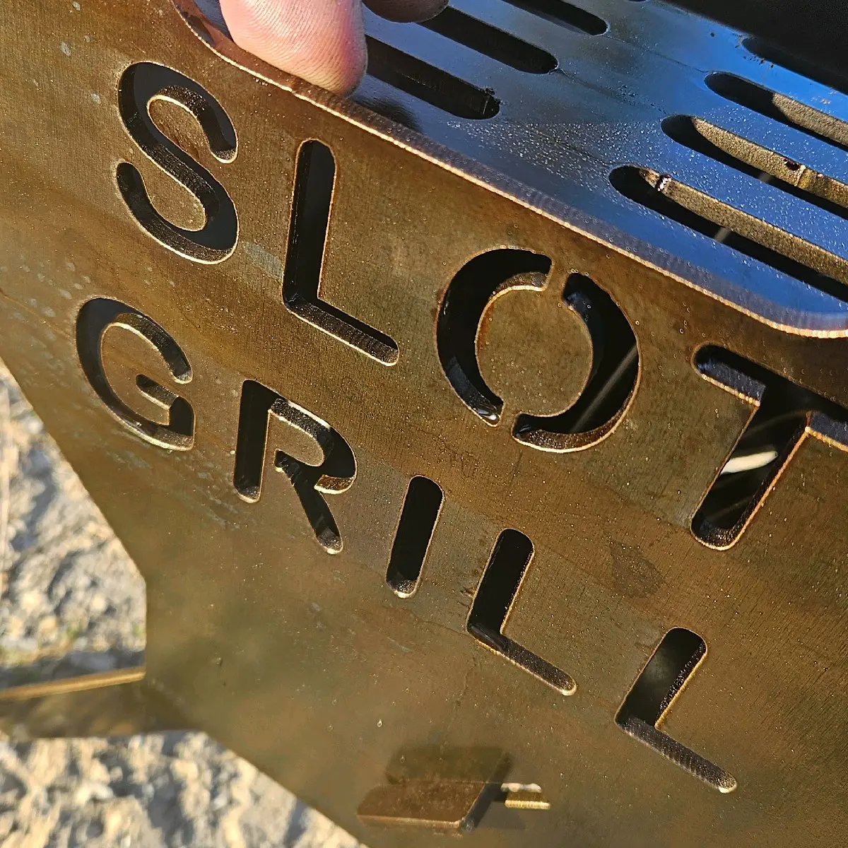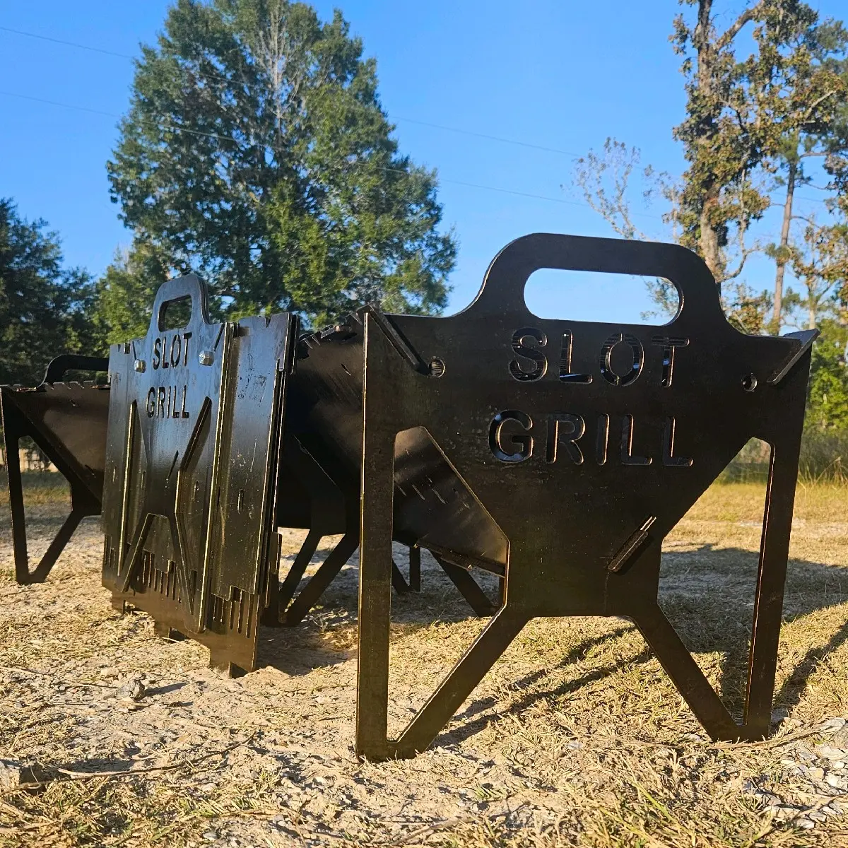 The Compact Slot Grill is designed for portability without sacrificing strength. At 16 by 9 inches of grill surface and weighing approximately 13.5 pounds, it is easy to transport while still being strong enough to support cast iron cookware and real cooking. Made from 12 gauge carbon steel, it is a serious grill in a smaller footprint.