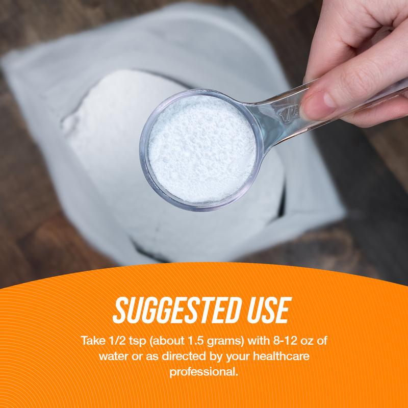 Suggested Use: Take 1/2 tsp (about 1.5 grams) with 8-12 oz of water or as directed by your healthcare professional.