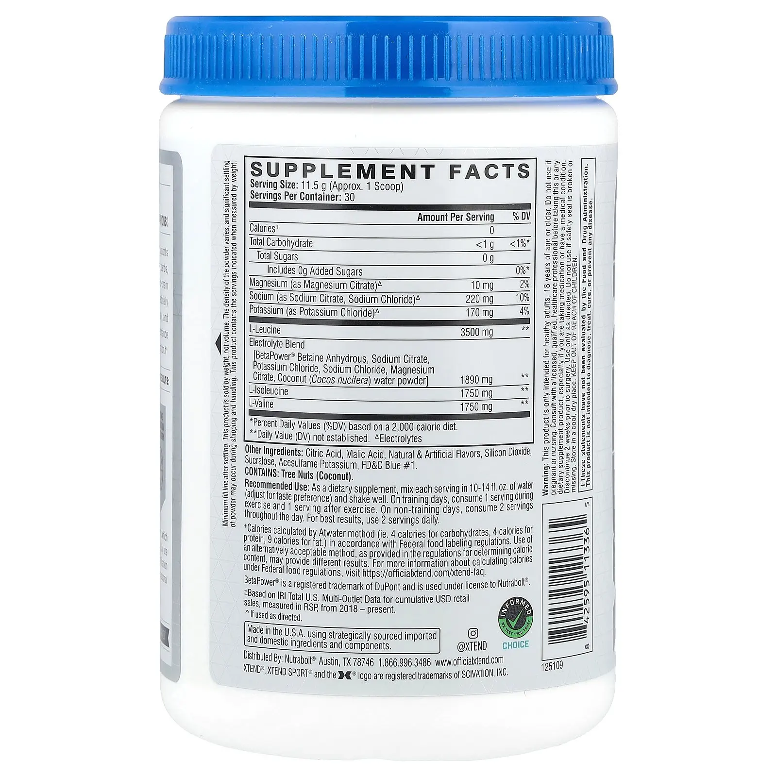 5. XTEND Sport®, 7G BCAA, Blue Raspberry Ice, 12.2 oz (345 g)
