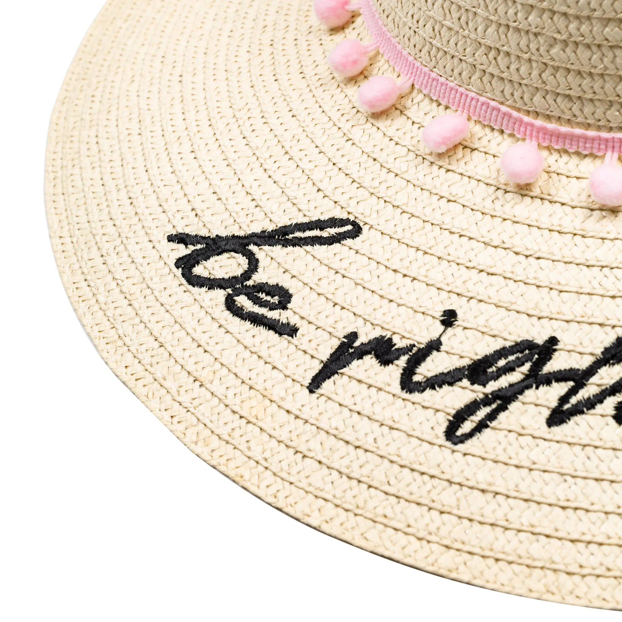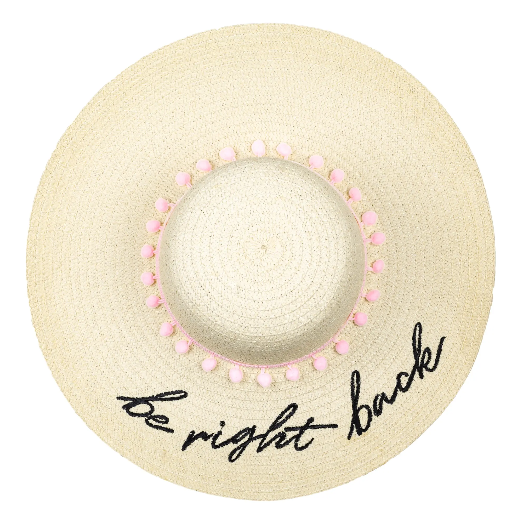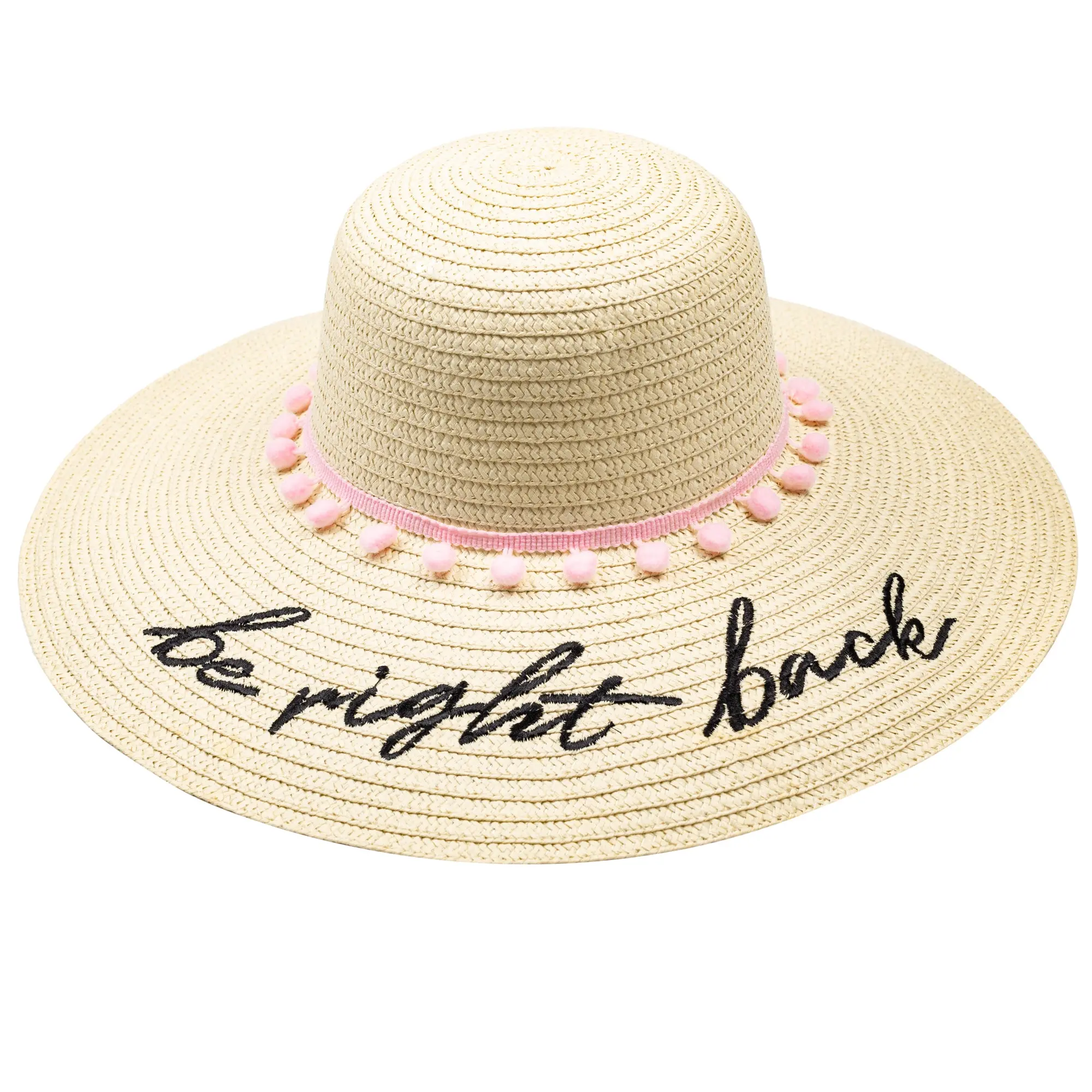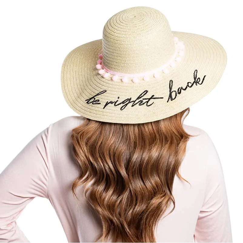 Nothing says summer like the perfect beach waves…or the perfect beach hat! Stay cool with this chic, wide-brim hat featuring embroidered “be right back” lettering—it’s the ultimate summer vacay accessory.