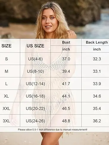 ¡ăElegantly and sexy designăTassel Swimsuit cover-up is featuring beautiful tassel trim, asymmetric hem, relaxed silhouette. Hand knit crochet, a deep V neck, sexy hollow out, the tassel is on the knee