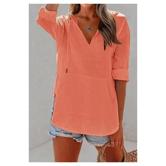 Love the pink color, very soft, made vary well. He fit is loose but perfect for spring and summer!