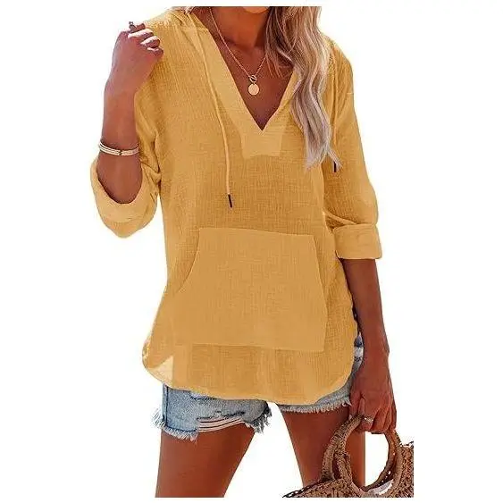Very cute light weight top. Not see through and TTS. Great for cool summer nights, transitioning from sprig to summer or bathing suit cover up.