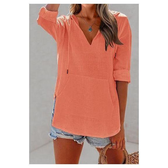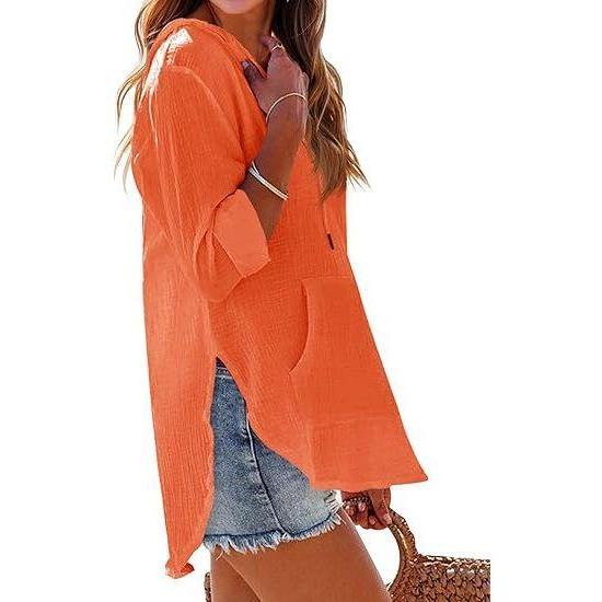It’s a cute hooded shirt and the orange color is striking. I love it and it will be great to pair with anything
