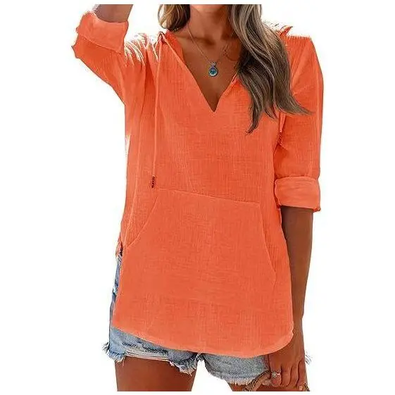 This is my 3rd color in this top. Love the top and was pleasantly surprised because the orange is a bright, happy, true orange - not a melon, not a faded orange with brown or red undertones. Looks amazing with a tan!