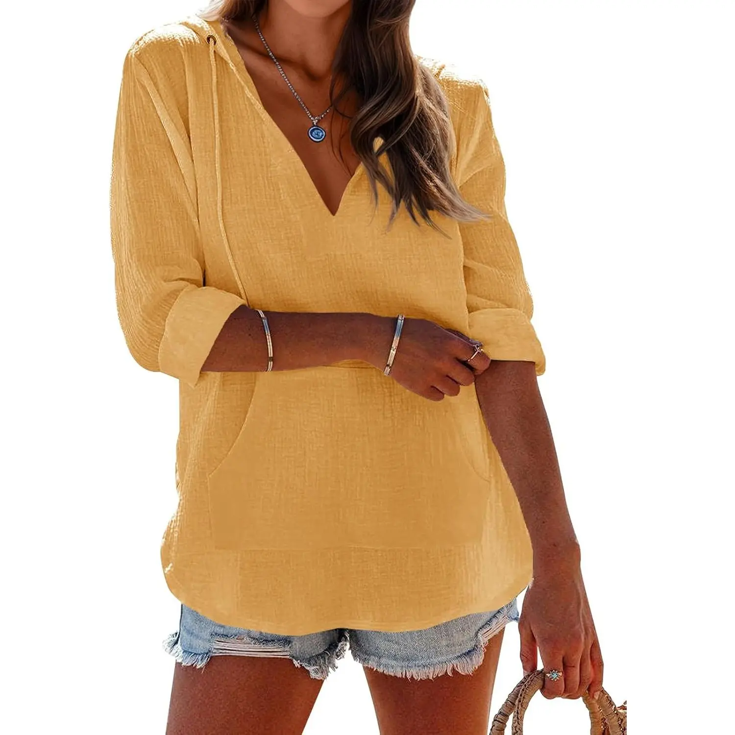 PiePieBuy Women's Long Sleeve V-Neck Hooded Beach Cover-Up Sweatshirt with Pocket, Womenswear Top BlousePiePieBuy Women's Long Sleeve V-Neck Hooded Beach Cover-Up Sweatshirt with Pocket, Womenswear Top BlousePiePieBuy Women's Long Sleeve V-Neck Hooded Beach Cover-Up Sweatshirt with Pocket, Womenswear Top Blouse
