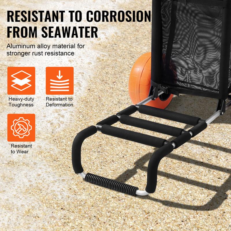 • Rust-Resistant Aluminum: Our beach cart is constructed from heavy-duty aluminum material with enhanced rust resistance, capable of withstanding the sun, rain, and erosion from sand, gravel, and seawater at the beach. The reinforced thickness of the aluminum tubing ensures it remains tough and resistant to deformation, ensuring long-lasting durability.