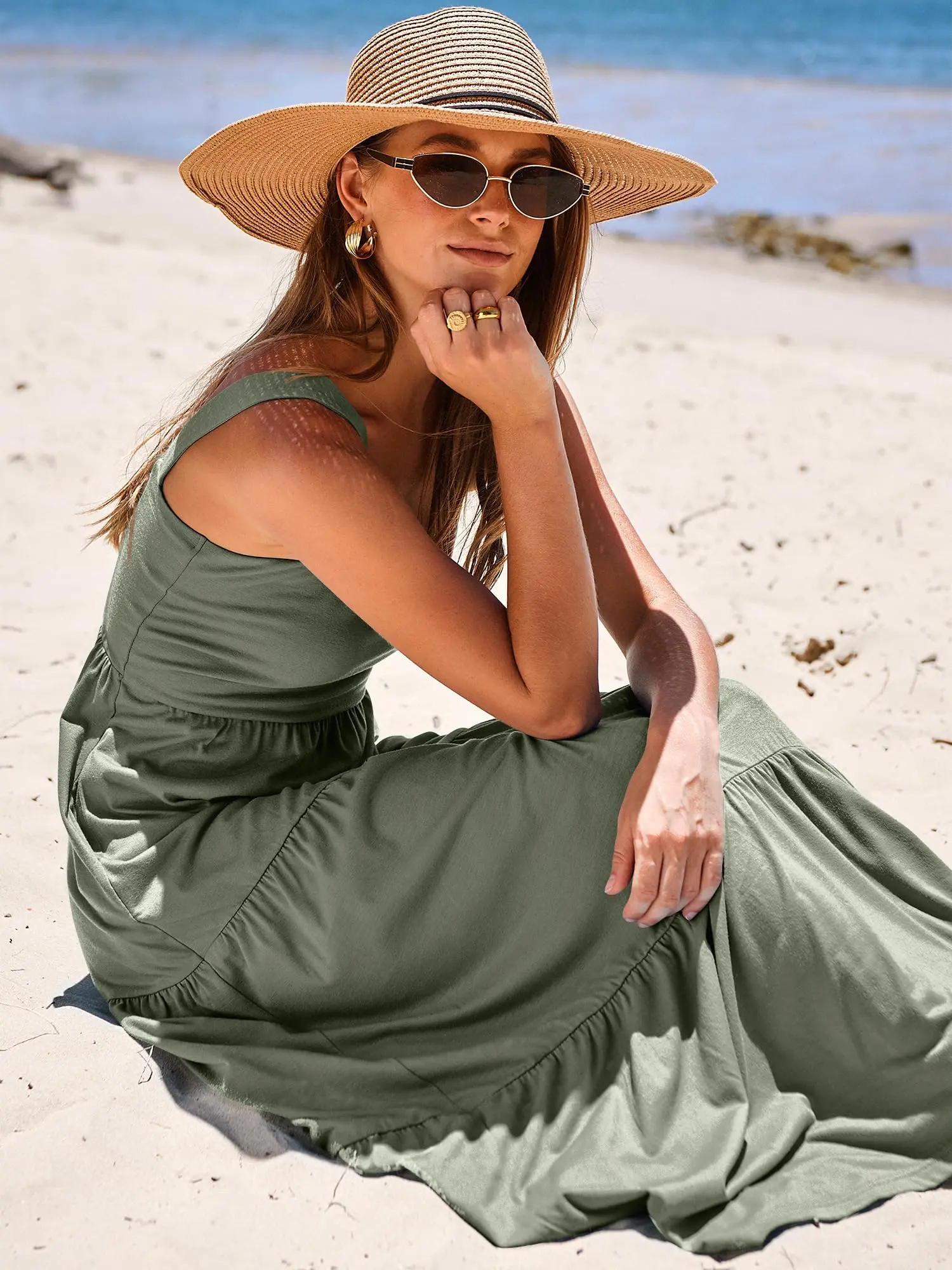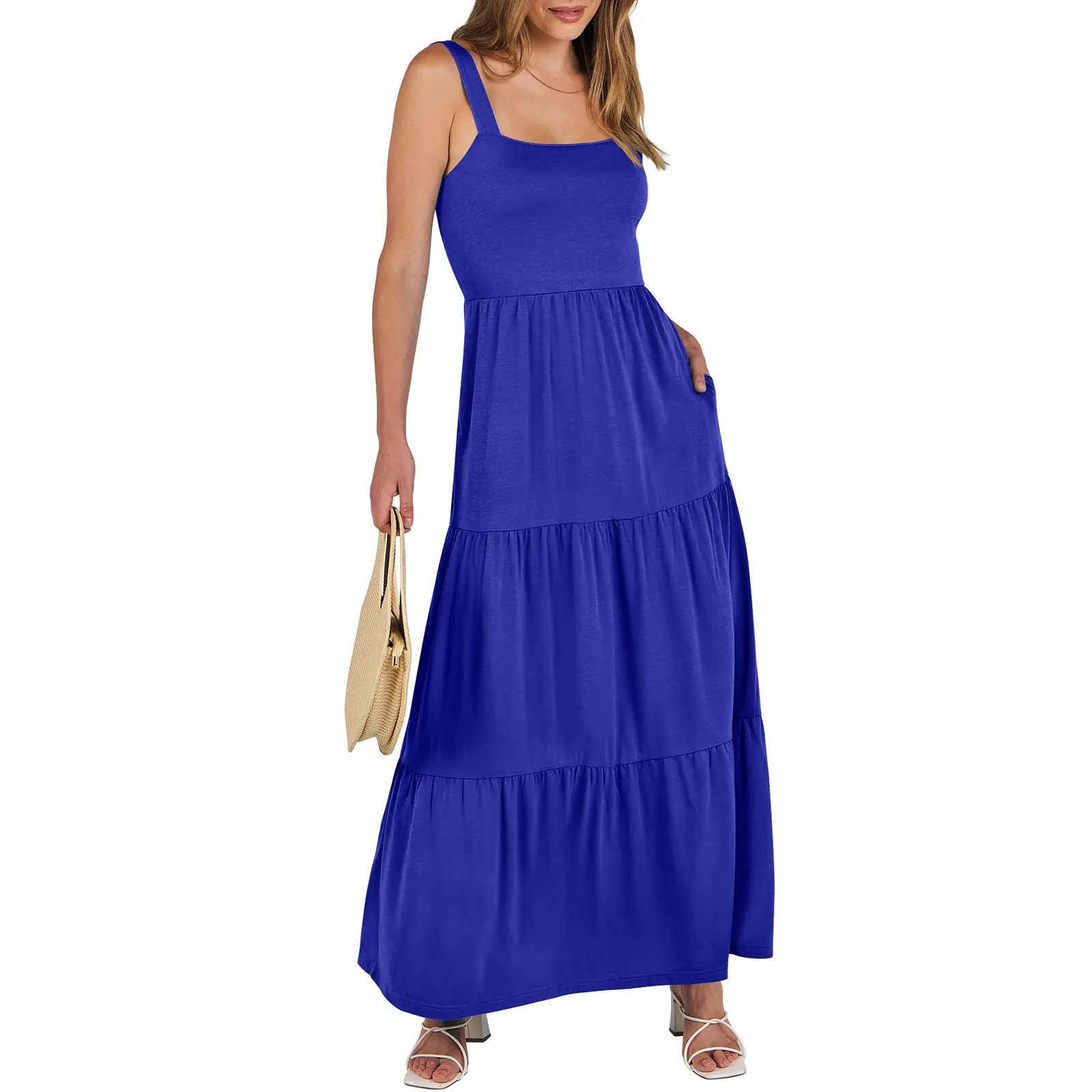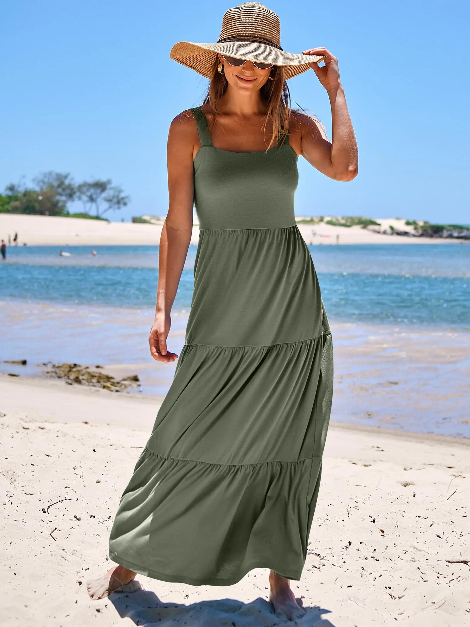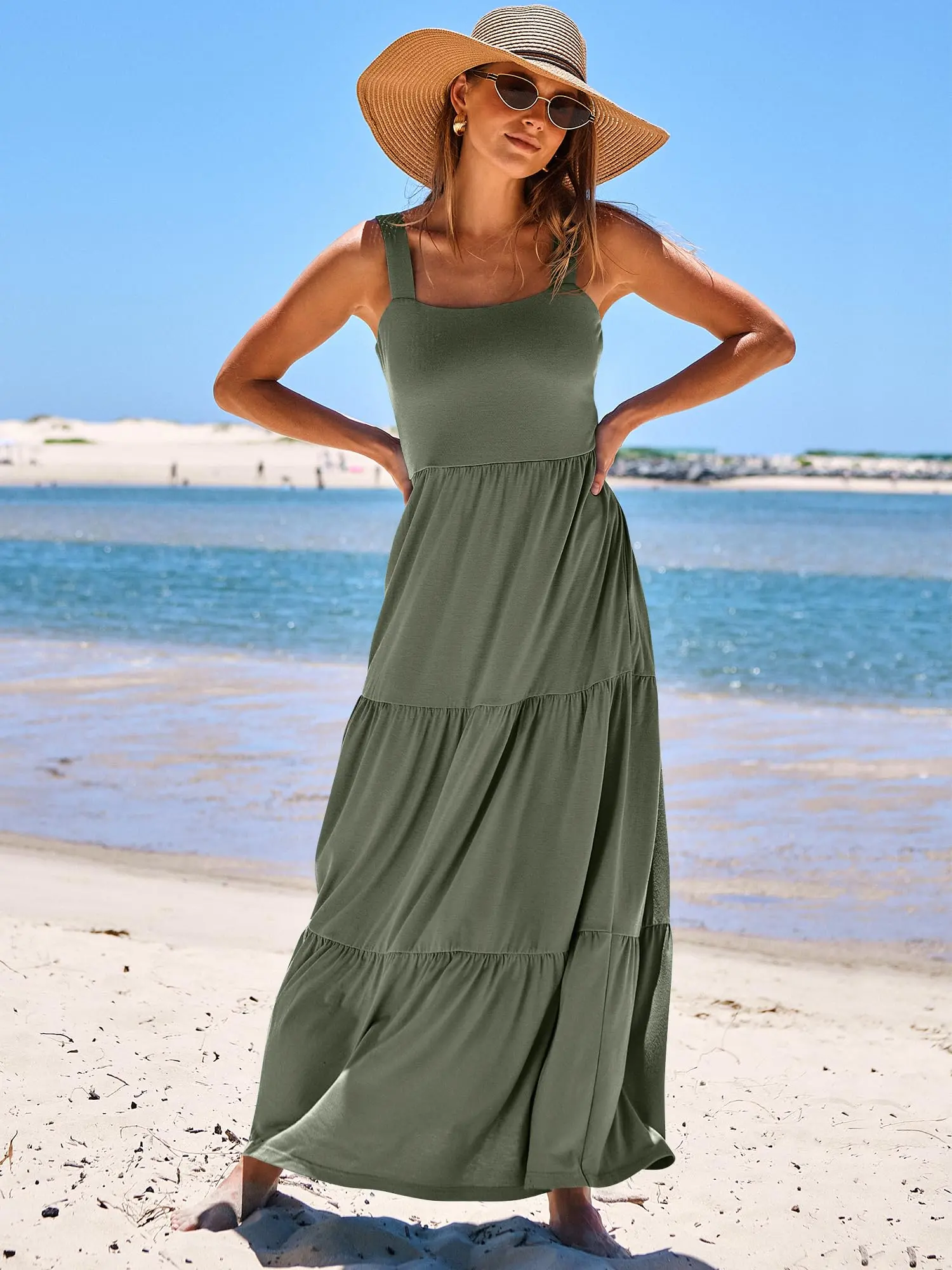 ·Features - Spaghetti strap, square neck dress, maxi length, backless, smocked back, two side pockets,relaxed fit, A-line pleated sundress, basic but cute long beach dresses