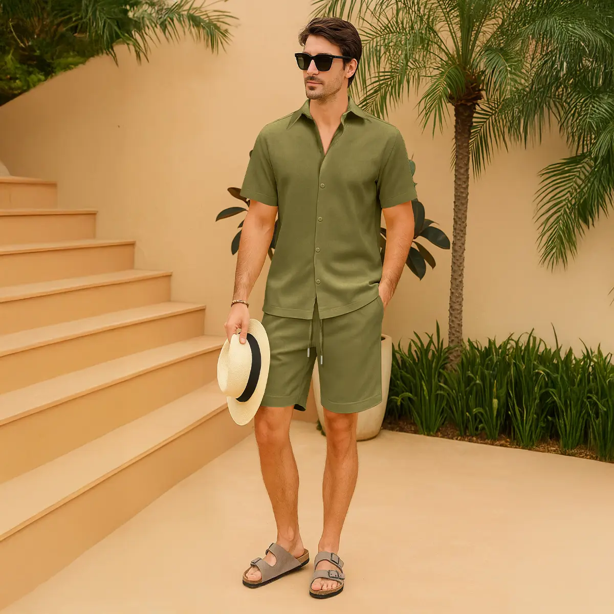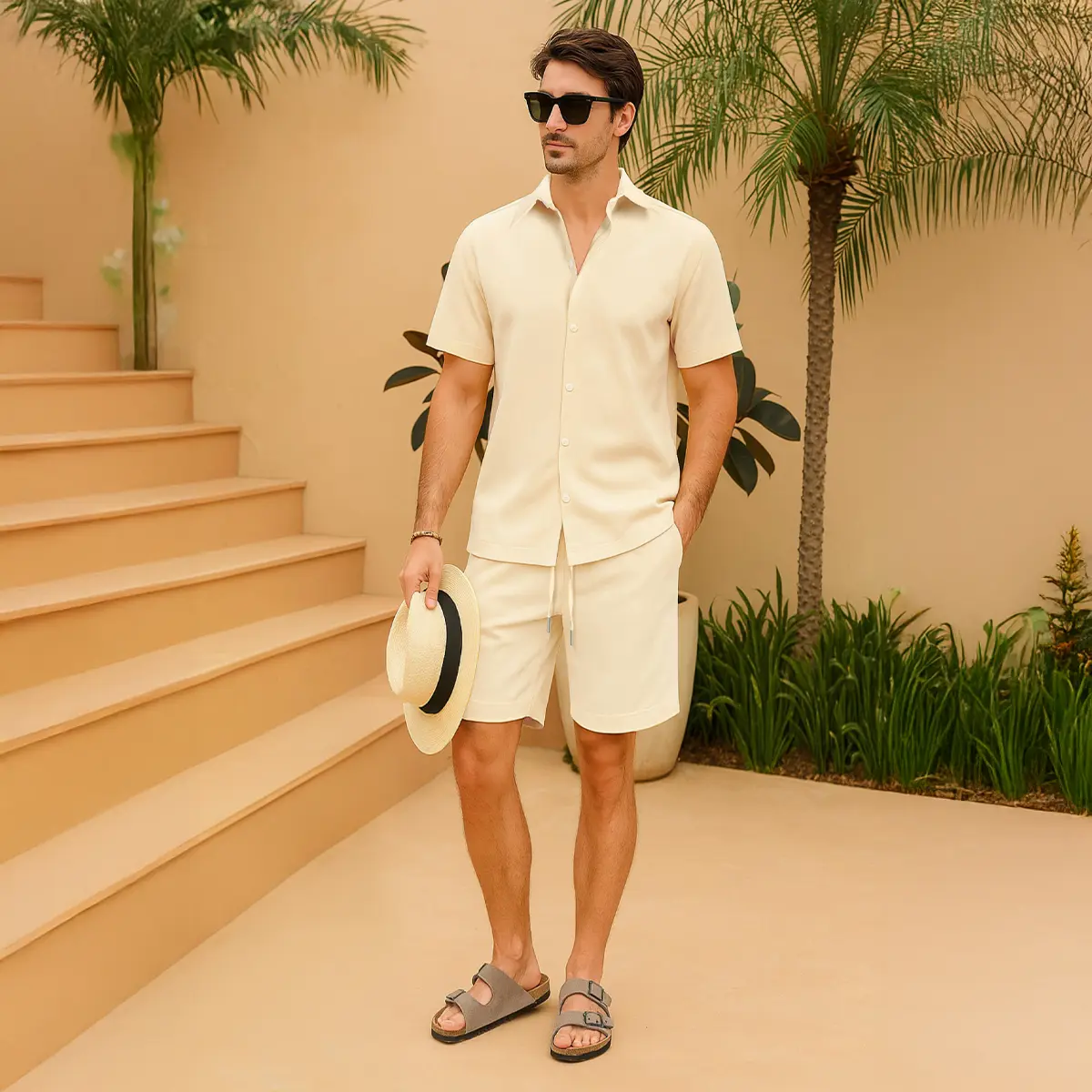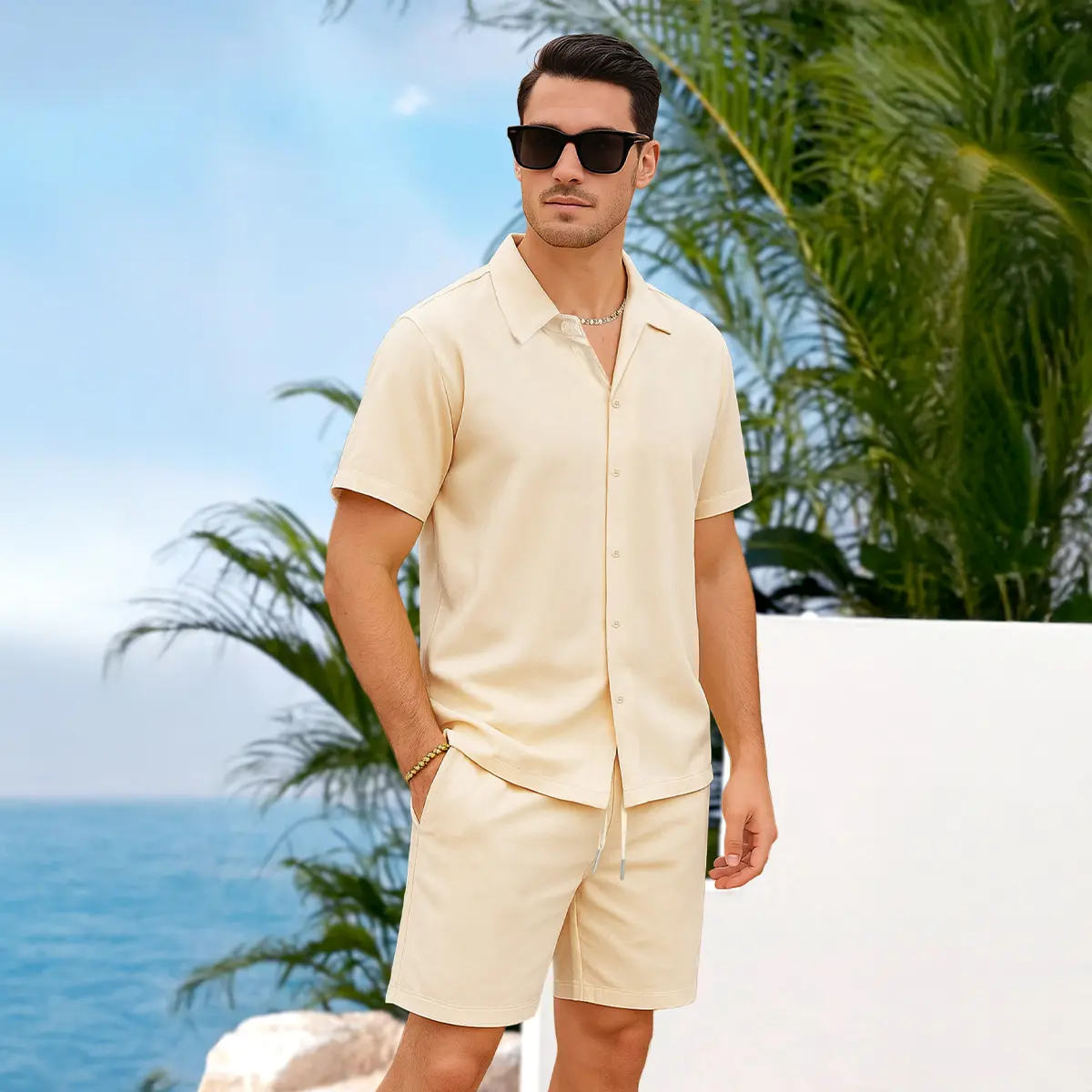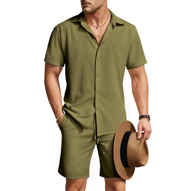 ·Mens summer outfit is made of high - quality linen texture fabric, which is soft, breathable and lightweight. This mens vacation outfits is wrinkle free and moisture - wicking, keeping you cool and relaxed all day