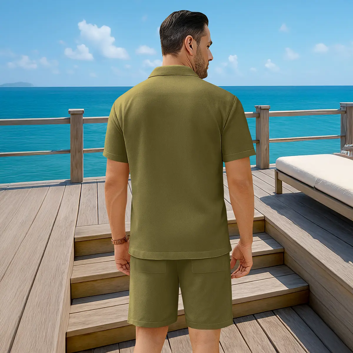 ·Mens beach outfit consists of short sleeve shirt and shorts.