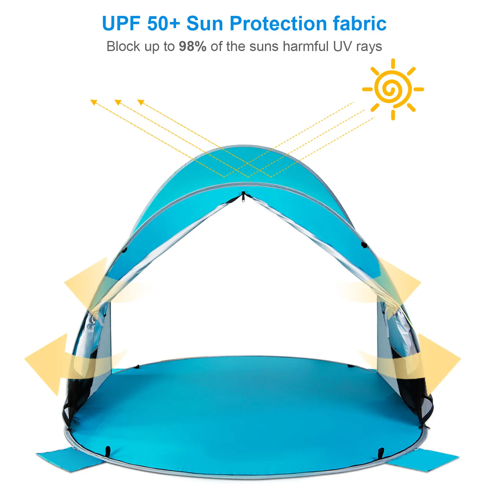 ·Creative Design & More Stability: Rear double pull sliders for easy entry/exit; 4 corner sand pockets for added stability on the beach; two storage pockets for small items.