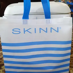 5. Skinn Cosmetics Beach Tote Bag with Blue Striped Design | Beach Bag
