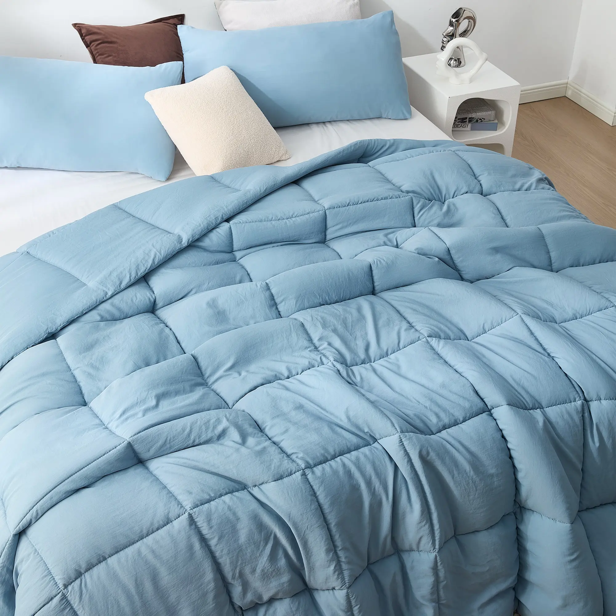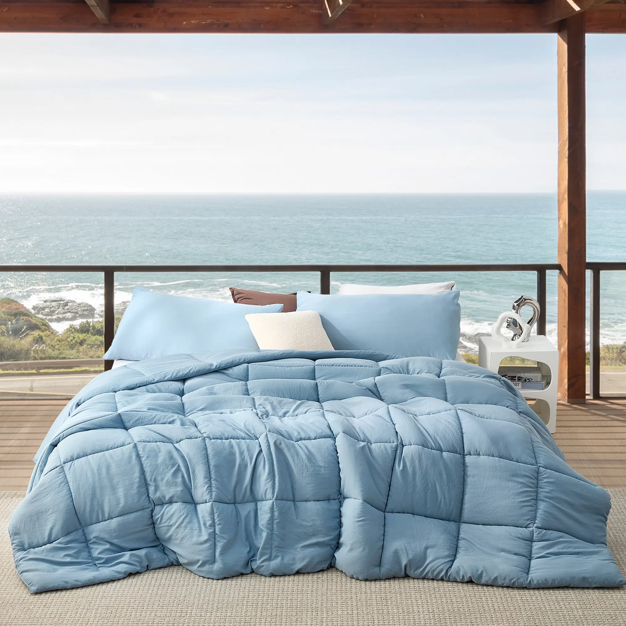 Inspired by A1A. If you know you know. It's almost impossible to say Beachfront Avenue without shouting out A1A! It represents the love of everything about beach life, summer fun, and relaxation. At Coma Inducer you may know us for our warming plush, but something happened along the way where we became addicted to the best, greatest, and softest levels of hand feel without always needing the thickest plush. Beachfront Avenue represents that level of comfort you'd expect from Coma Inducer, but with a surprisingly light and cooling fluffy feel that meets the needs of summer. Made with a cooling blend of nylon and polyester, this oversized summer comforter provides a unique kind of cozy that makes leaving your bed a challenge... even if you're heading to the beach! To further help you stay cozy, the inner fill is a puffy and fluffy down alternative that provides enough weight to remind you that it's a comforter, yet it's designed to not overheat. Our Beachfront Avenue Coma Inducer proves Coma Worthy Sleep doesn't need to be just for the winter months!