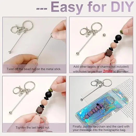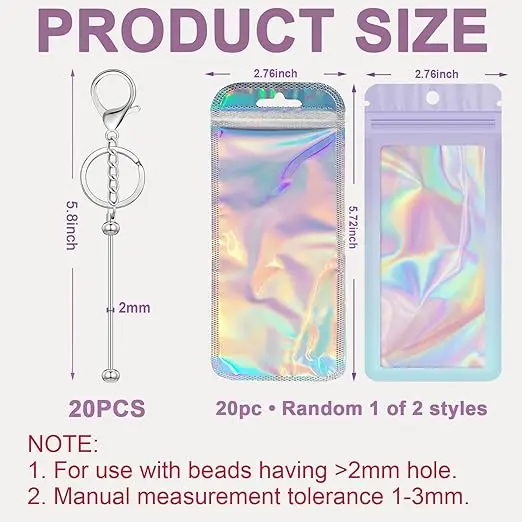 ·PACKAGE CONTENT: 20 beadable keychain blanks(Requires decorative bead hole diameter larger than 2mm), 20 resealable holographic bags for packaging. It's the perfect all-in-one set for craft projects, DIY accessories, or party favors.