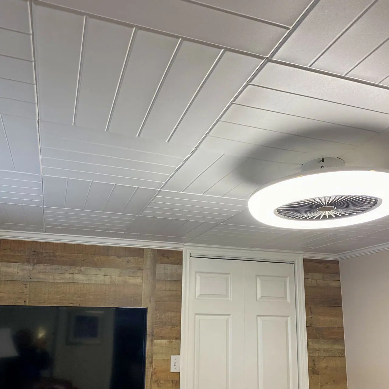 5. A La Maison Ceilings Beadboard 20 in x 20 in Decorative Styrofoam Glue-up Ceiling Tiles - #R104 - (Pack of 8) / 21.6 sqft