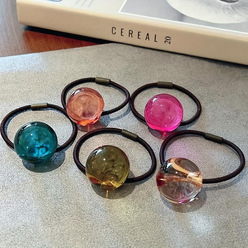 5 Pcs Adorable Beaded Hair Ties - Elastic Ponytail Holders, Colorful Hair Accessories for Women, Ideal Christmas Gift, Fashionable Daily Wear