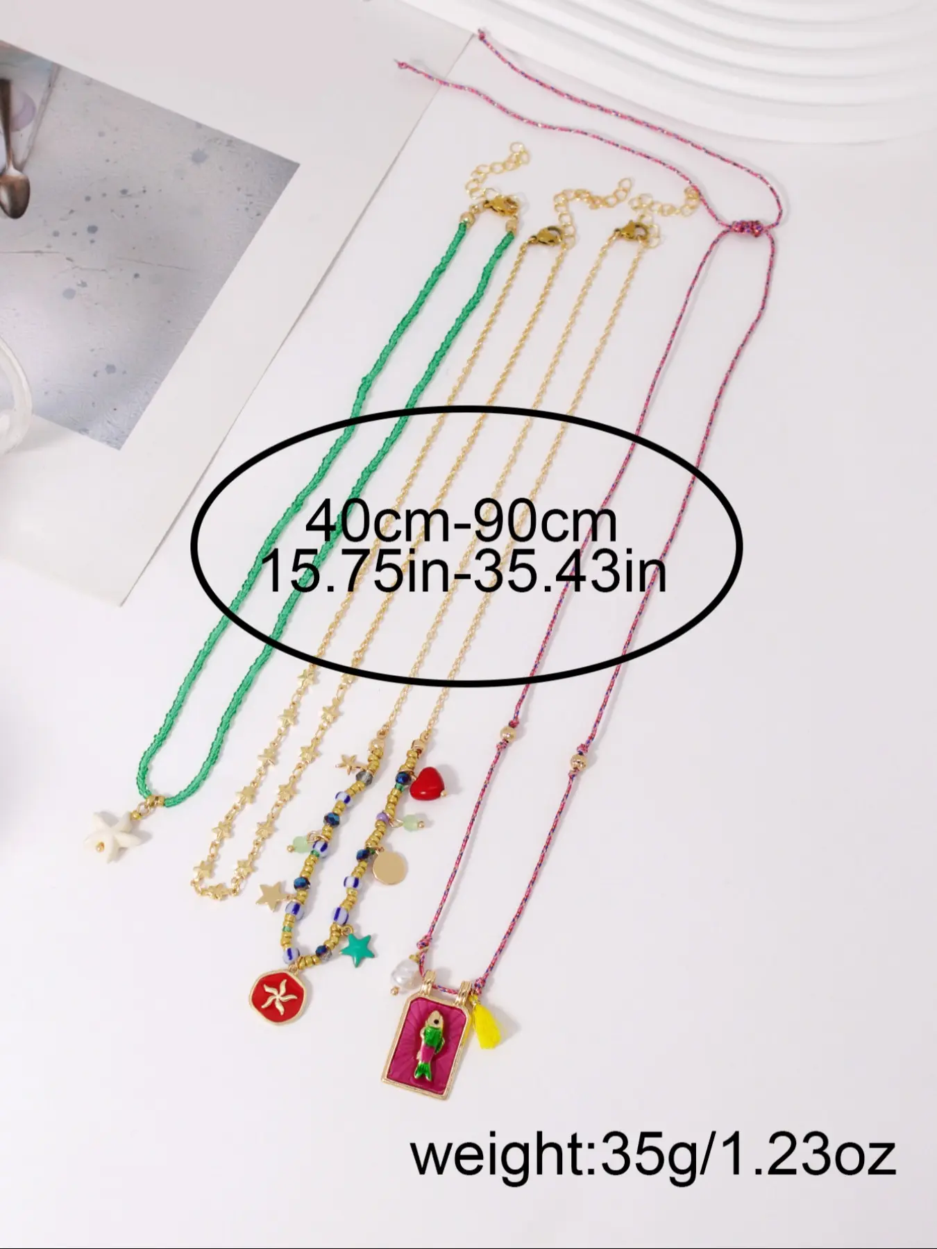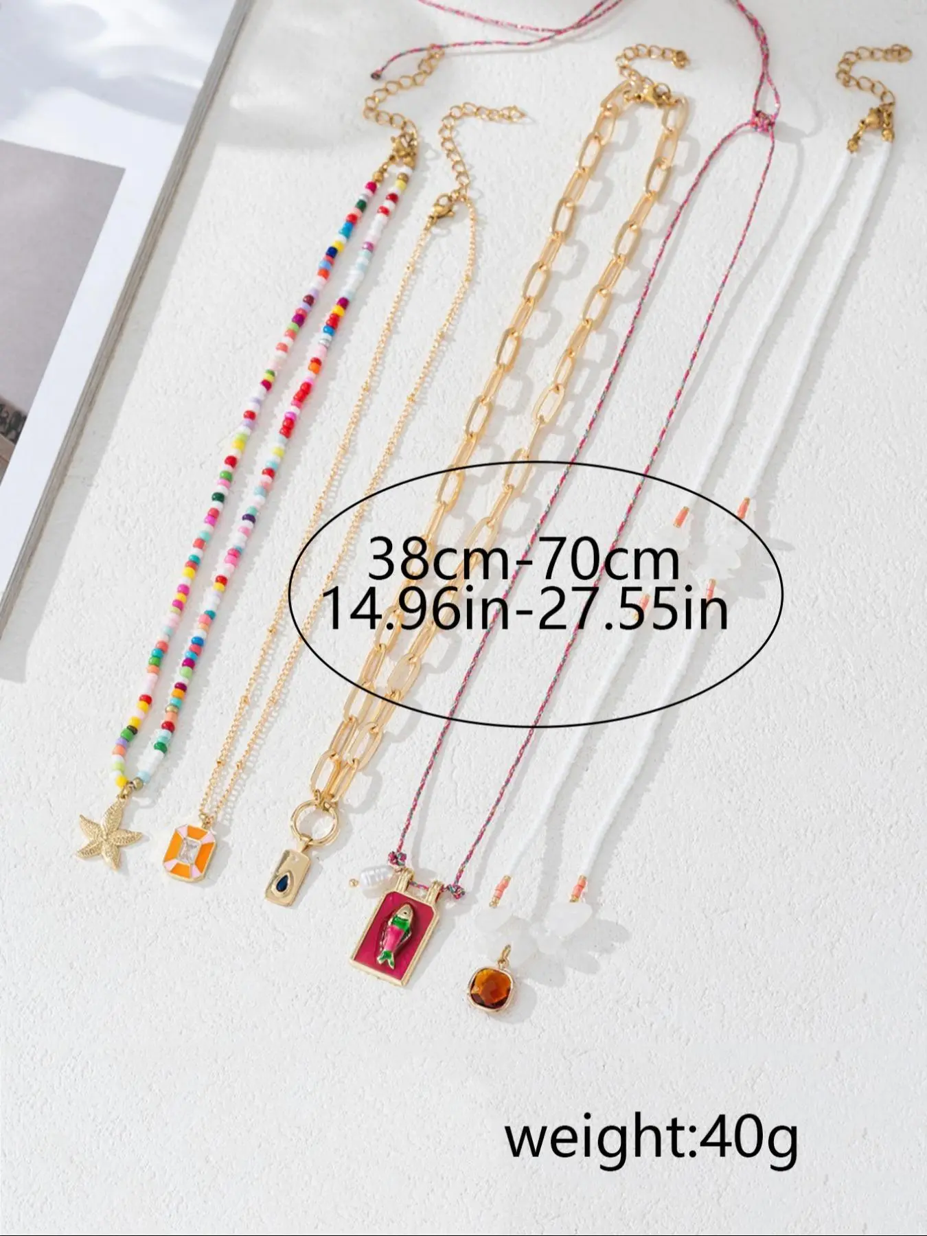 The gold link chain was anklet size. The rest of the necklaces were goo quality.