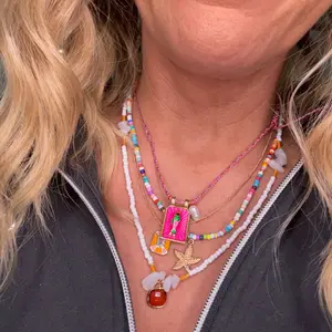 I love it but sadly the white necklace with the orange gem broke 5 minutes after putting it on. I'm so sad. And after wearing the necklaces for one day the metal on each completely tarnished to a dull ugly color, gold completely gone I am so disappointed in this product.