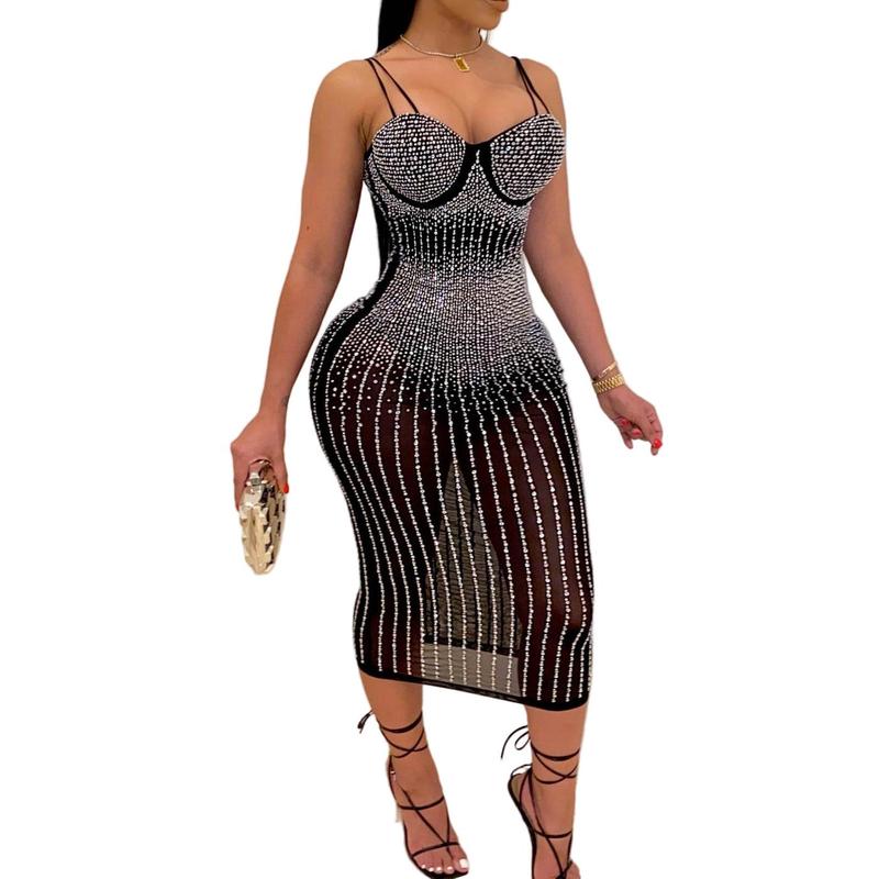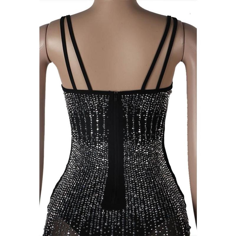 Capture all attention as you enter the room in this stunningly seductive dress. The form-fitting stretch fabric accentuates all your curves, while the sweetheart neckline, padded cups, rhinestone bodice, elastic straps, and underlined mesh fabric add a touch of luxury. Complete with a center back zipper, this dress is made of 90% Nylon and 10% Spandex for a snug and comfortable fit.