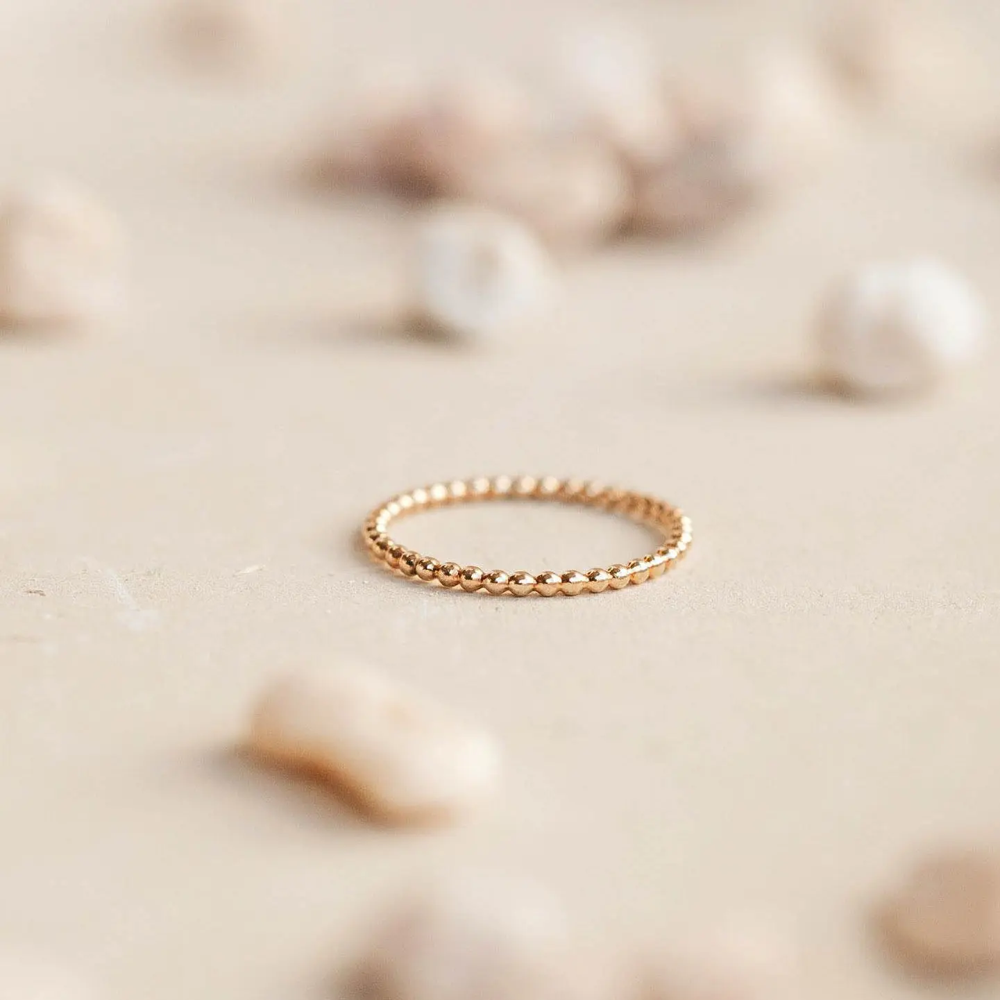 If you love the confetti ring, this beaded ring should be next on your wishlist. It's super versatile paired with a teeny tiny ring for a minimalist look or a squiggle ring for something fun and whimsical. Tip: if stacking, make sure both rings are the same size because this ring has a tendency to overlap.