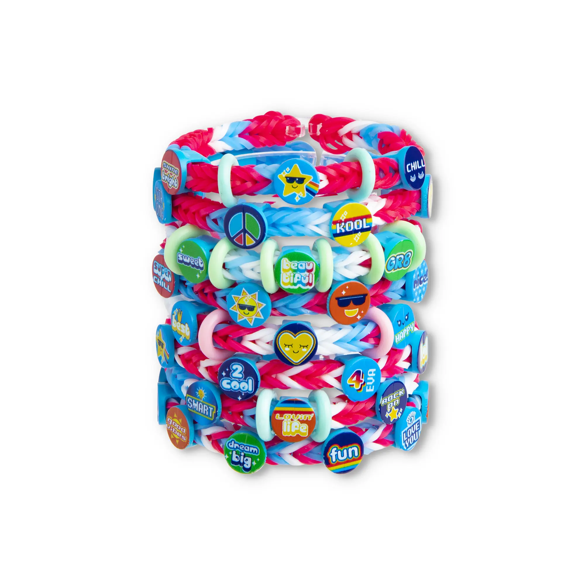 Introducing Beadmoji! Rainbow Loom’s unique beads that feature fun messaging and icons that allow you to tell your story with a wide variety of trendy themes. Create fun and original accessories for you and your friends. Beadmoji features our new speed loom and dual hook allowing you to create bracelets twice as fast. Create your own style!