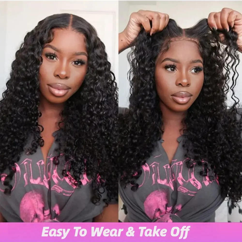 Bling Hair Deep Wave 13x6 13x4 Glueless Wig With Drawstring Hd Lace Frontal Glueless Wig Human Hair For Women Ready to Wear 6x4 Lace Closure Wig Curly Wave Hair