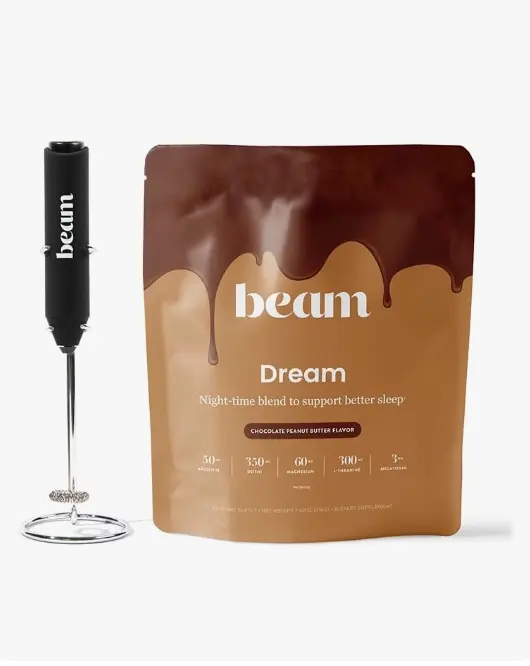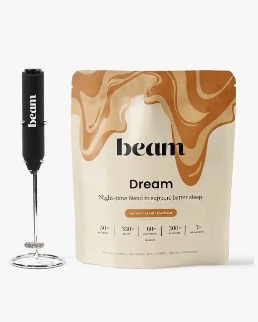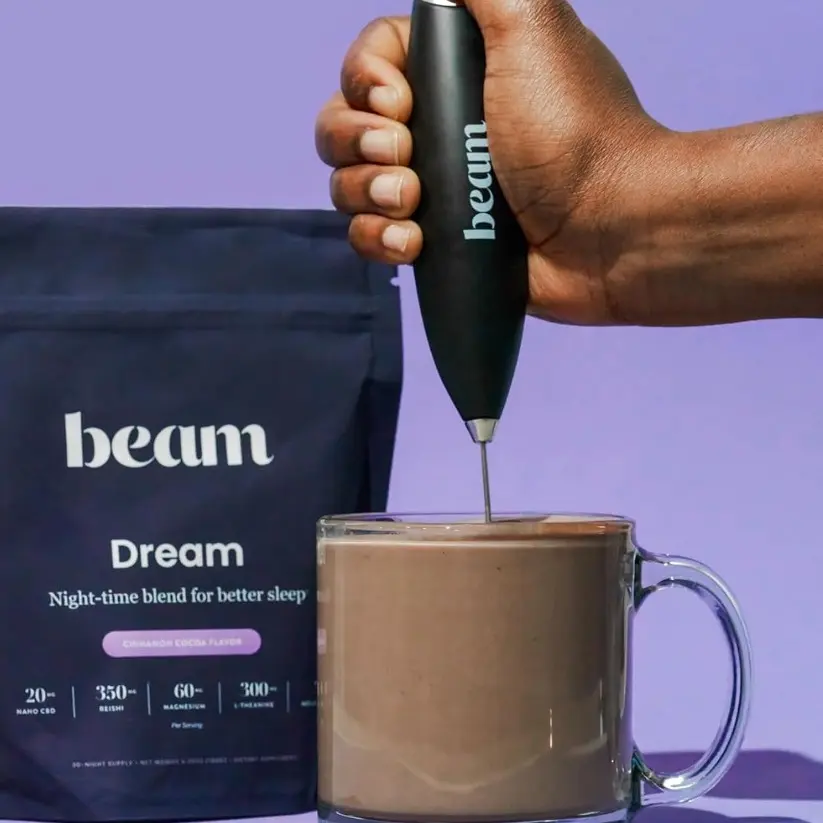 Experience the convenience of the Beam Frother, the perfect tool for mixing your Beam Dream Sleep Powder. This handheld frother is designed to make mixing your favorite beverages effortless.