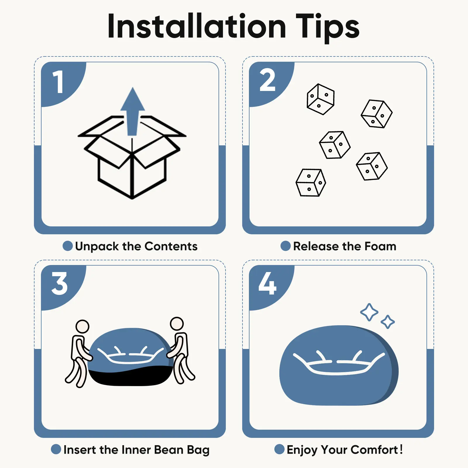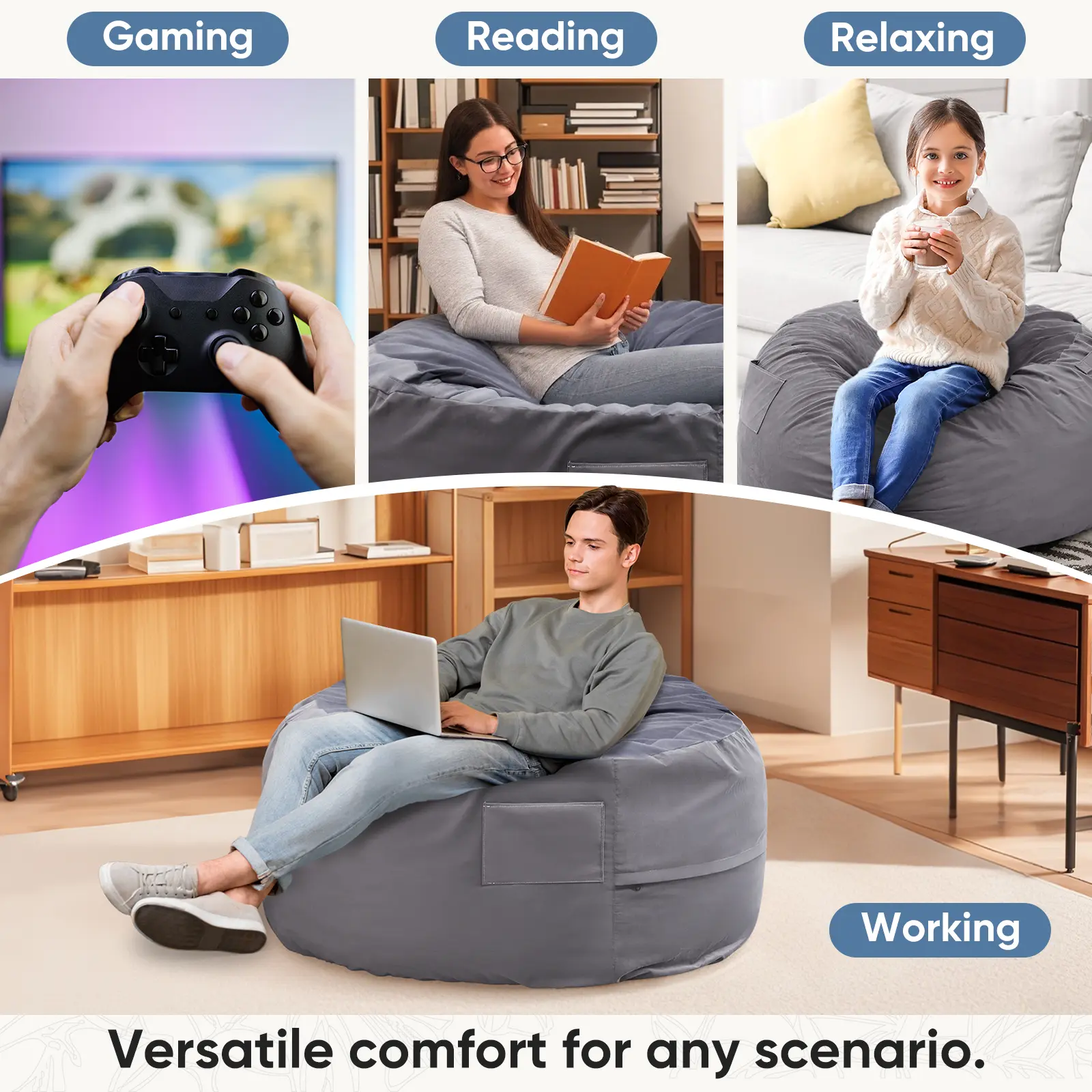·Versatile and Comfortable: Designed with comfort in mind, our bean bag chair is perfect for lounging, reading, gaming, or watching movies. It's a versatile addition to any room, such as bedrooms, dorm rooms, or playrooms, offering a cozy and inviting place to relax.