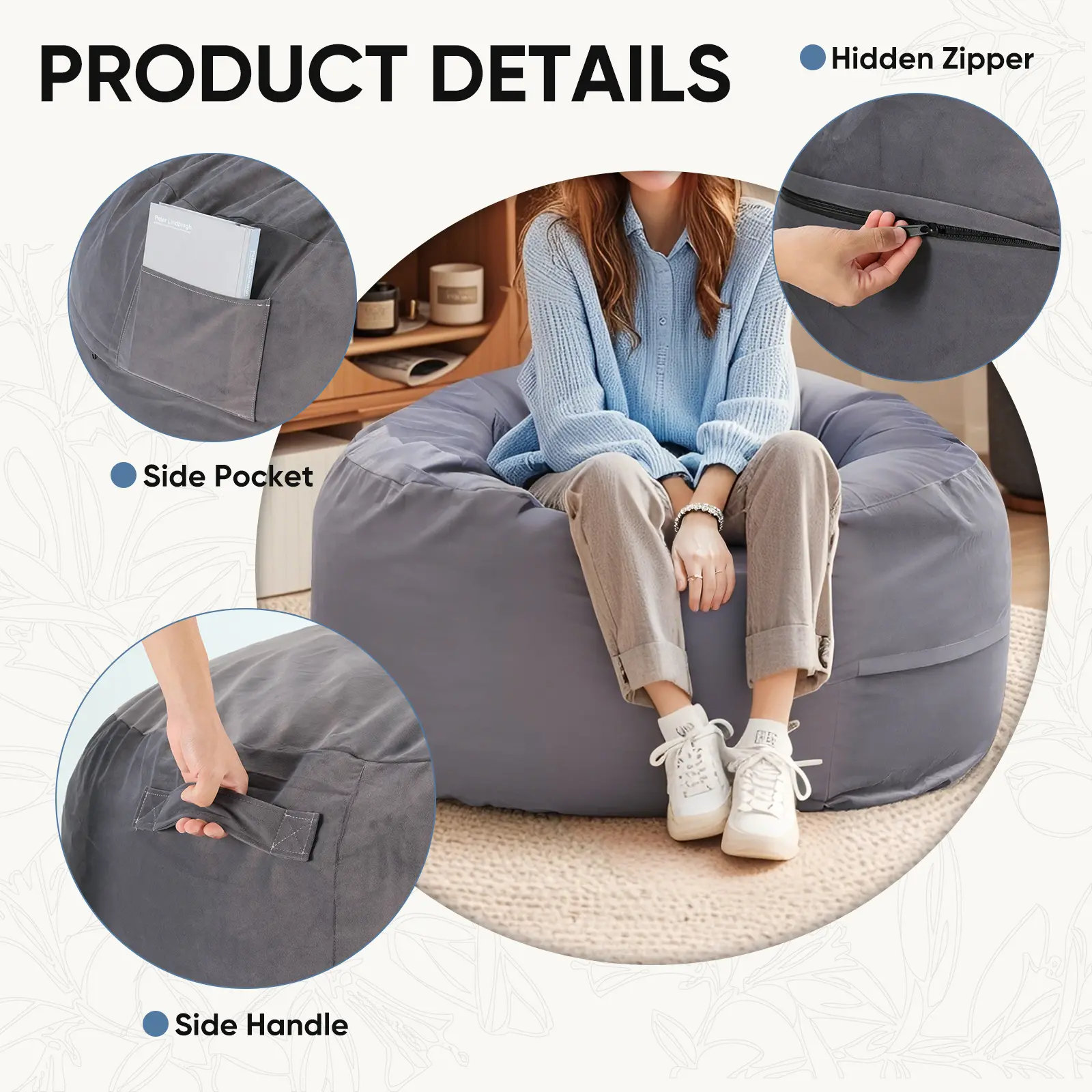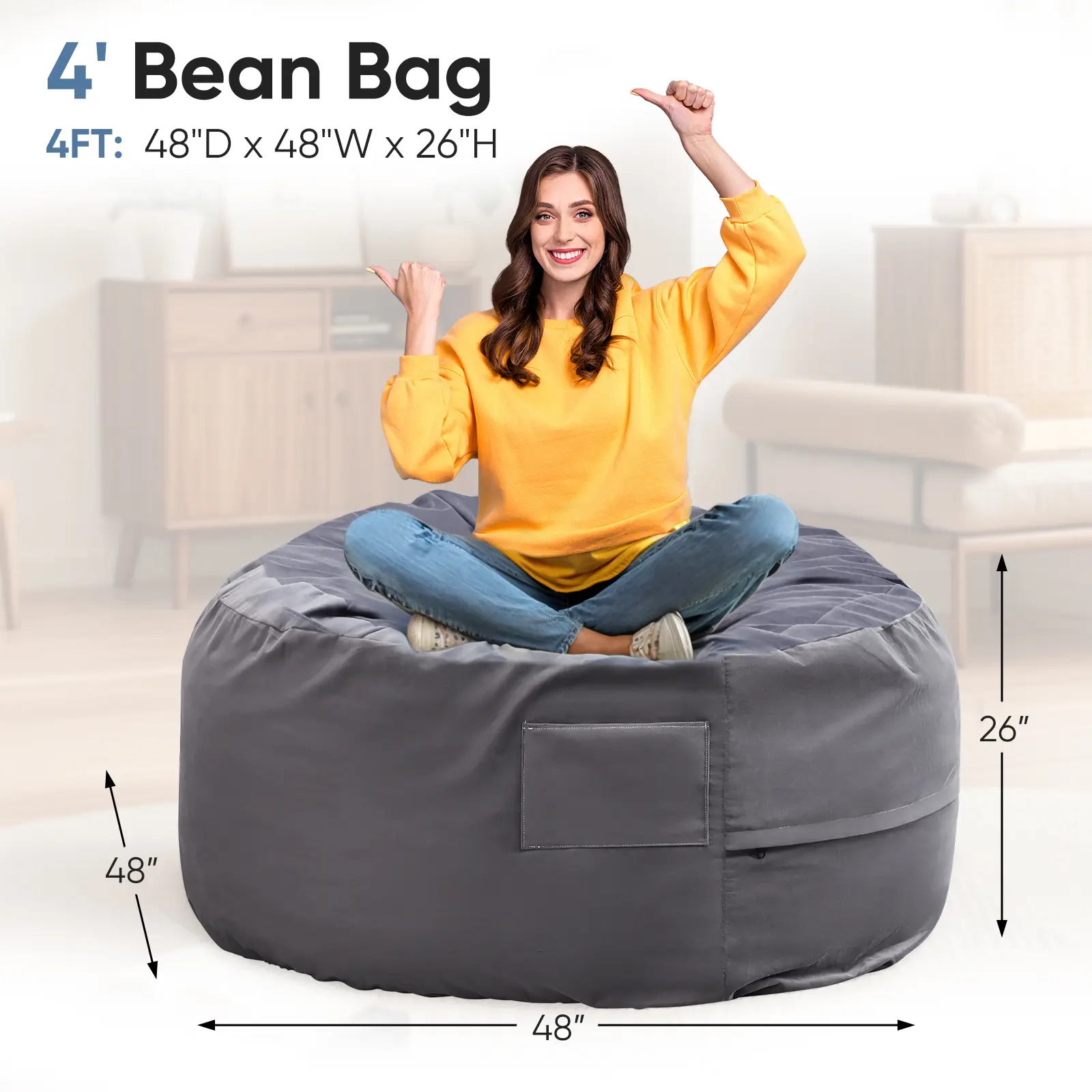 ·Multiple Usage Scenarios: This bean bag chair functions not only as a comfy chair but can also be transformed into a floor couch or a casual bedroom chair, complementing any interior décor. Its lightweight design allows for easy relocation, providing flexible seating options throughout your home