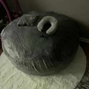 I LOVE this beanbag! It’s pretty big, I got the 5ft one in pink with the 3 free gifts. The neck pillow, the blanket and the little white area rug for underneath. I personally did add some more merry foam filler (this is a matter of personal preference) and I like the way it sits better with it!