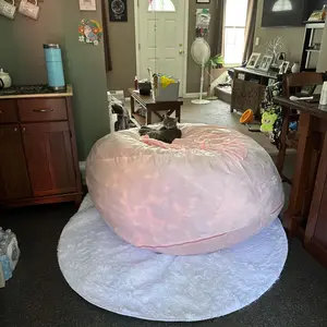 I actually like this beanbag I would’ve got the jumbo size but I wouldn’t have enough space in my room for that so I got the 5 feet one I believe, but it matches my pink and grey room and my cat likes to sleep on it . Lol and it comes with a rug and blanket.