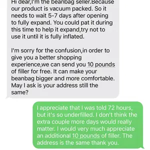 Very good price for the product and the things that come along with it it does have an off smell but other than that I love this bean bag very large I got a 5ft