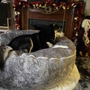 I have a husky and I got him the jumbo bean bag and he absolutely loves it. I would recommend this to anyone. It’s easy it’s comfortable and it sits 3 of us on it. The quality and price was worth it.