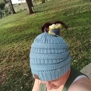 The perfect beanie for my girl who has her hair in a pony tail 95% of the time. 🎯