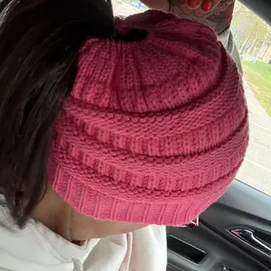 Absolutely LOVE this hat. Itbis about time someone came up with a stylish hat for us girlie with ponytails. This hat is amazing quality, color is vibrant and it is so warm and comfortable. Best purchase I made this winter!!! I even bought the regular one with sequins in pink.
