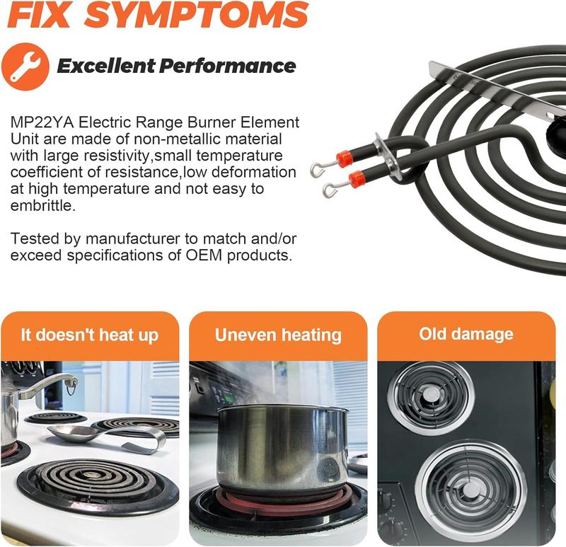 ·【𝙊𝙉𝙀 𝙔𝙀𝘼𝙍 𝗚𝗨𝗔𝗥𝗔𝗡𝗧𝗘𝗘】---MP22YA Electric Range Burner Element Unit Set supports 1-year warranty and a 90-day return & exchange.Our company attaches great importance to the shopping experience of each customer.★PAY ATTENTION---If the stove is not flat on the stovetop, make sure that the connecting bolts are parallel and push down a little bit. If there is a little smoke when MP22YA Electric Range Burner Surface Element is used for the first time, please don't panic. This is normal. This is a green coating applied by the factory to prevent scratches during transportation