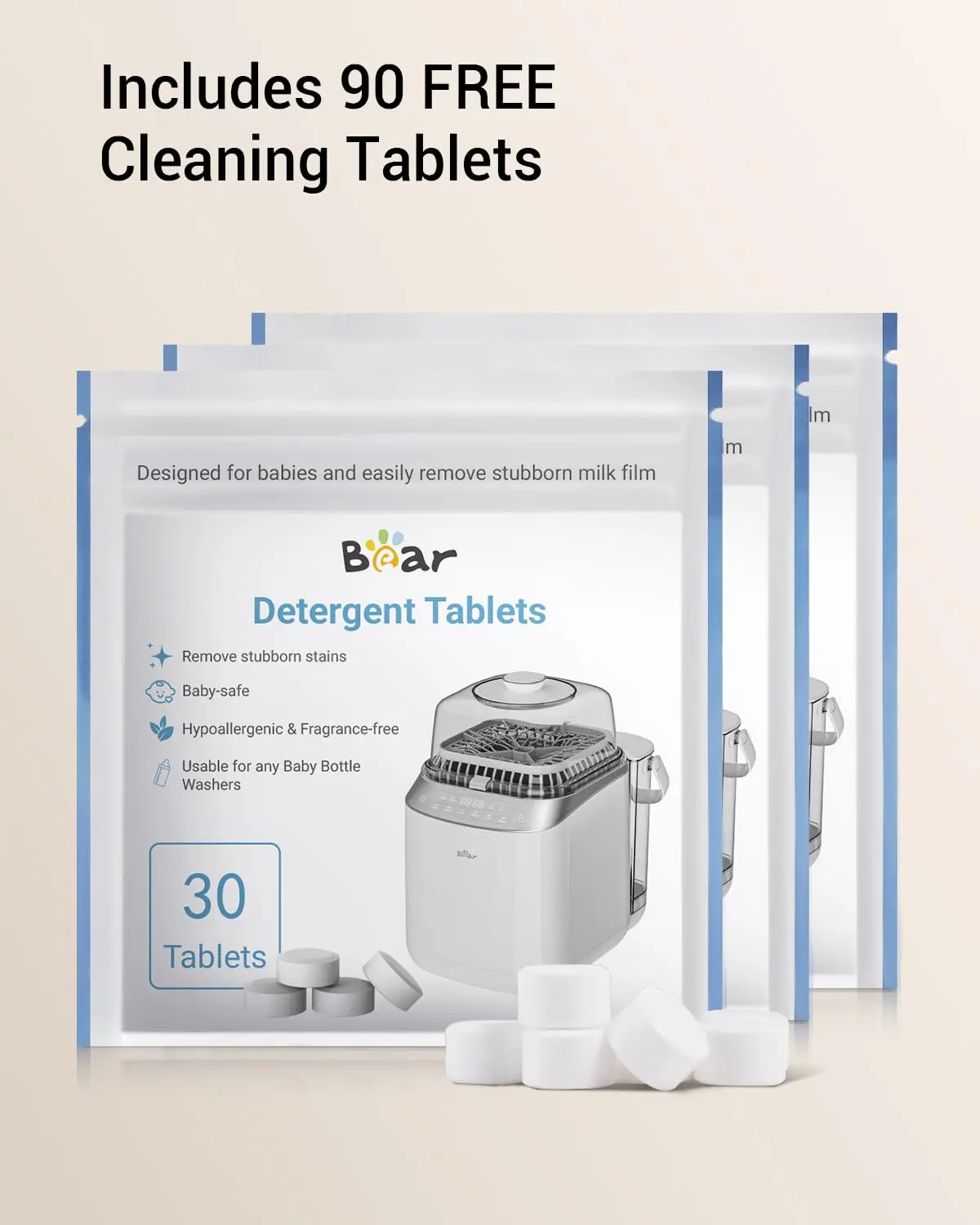 ·PEACE-OF-MIND SAFETY & PREMIUM INCLUDES: BPA-free construction with auto-shutoff and overheat protection; backed by a 1-year warranty. The Bear Bottle Washer and Sterilizer and Dryer comes with 90 official Bear detergent tablets – double the competition's supply for months of worry-free use. NOTE: Compatible with 120V 60Hz voltage