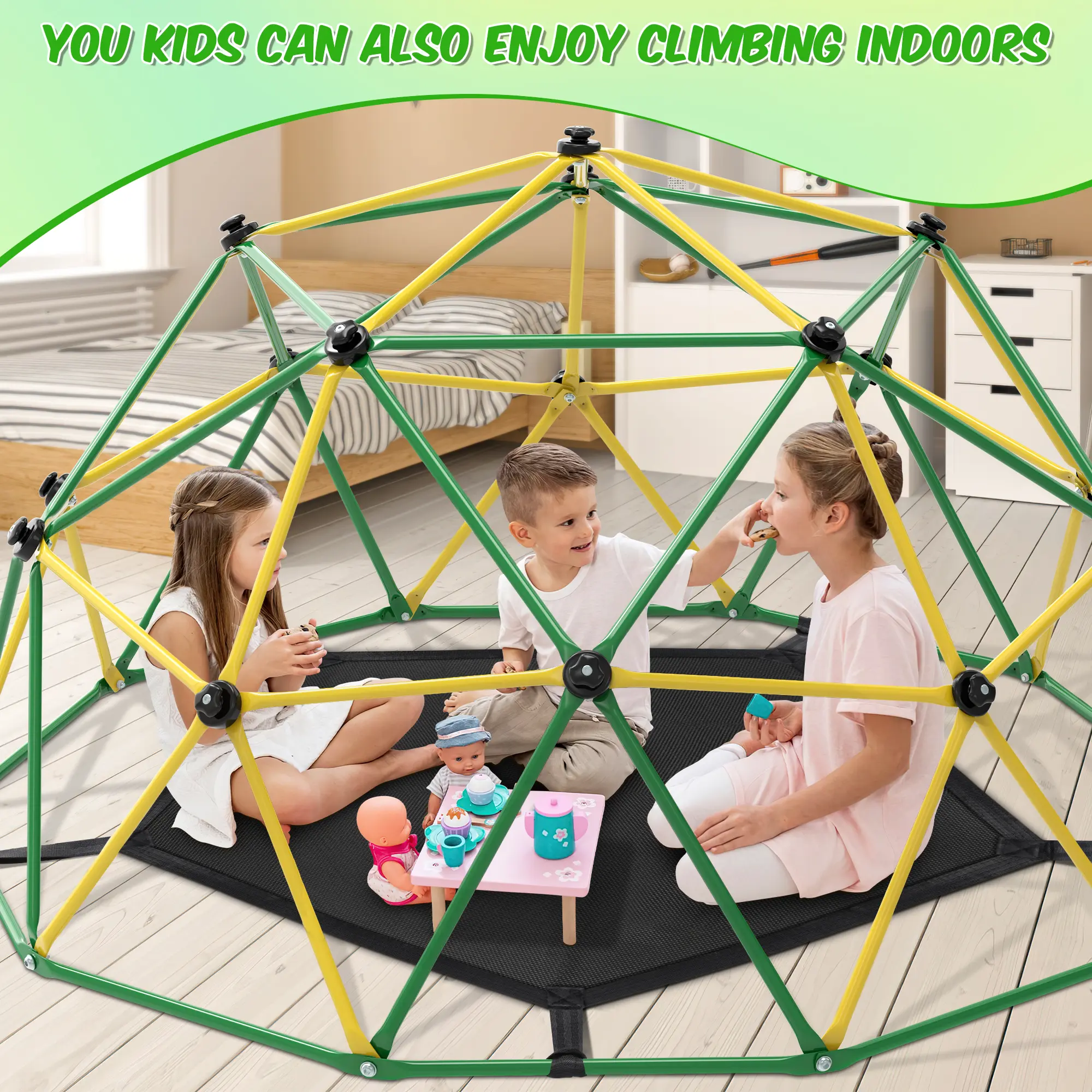 ·Improve Eyesight and Physical Strength - Play on the Climbing Dome with your kids and enjoy the accompany happy of your kids. Take your child outside to improve your child's eyesight, naturally adjust eye muscles and help relax. Enhance physical fitness, help vestibular development, exercise children's courage, let children more brave, confident, lively and cheerful.
