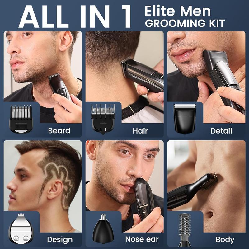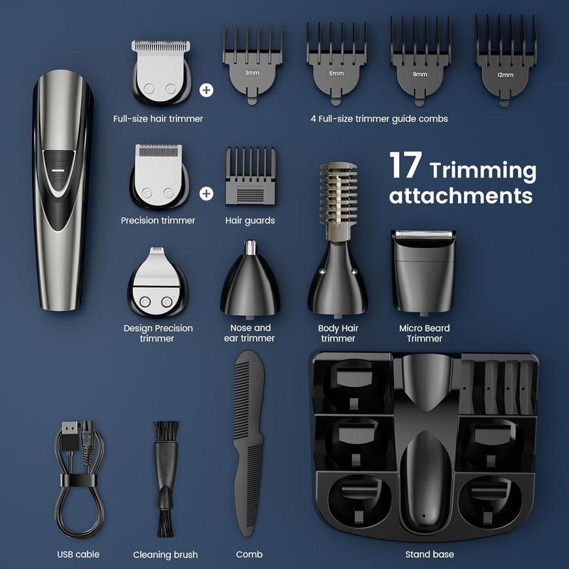 ·[All-In-One] Versatile mens grooming kit with 16 accessories.From hair,nose hair,beard to body,effortlessly meet all grooming needs.Elevate your grooming routine with our multi-functional beard trimmer kit.6 kinds of trimmer heads(Precision/full size/design/micro/body/nose hair trimmer)and different size trimmer guide combs are included.