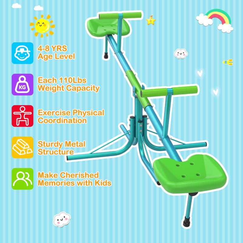 ·SPINNING BOUNCING SEESAW: 360-degree spinning seesaw brings a whole new lot of fun and giggles to the outdoor playground, kids can comfortably sit on, bounce up and down, and spin around and around. Upgraded to hold 100 lbs for each seat