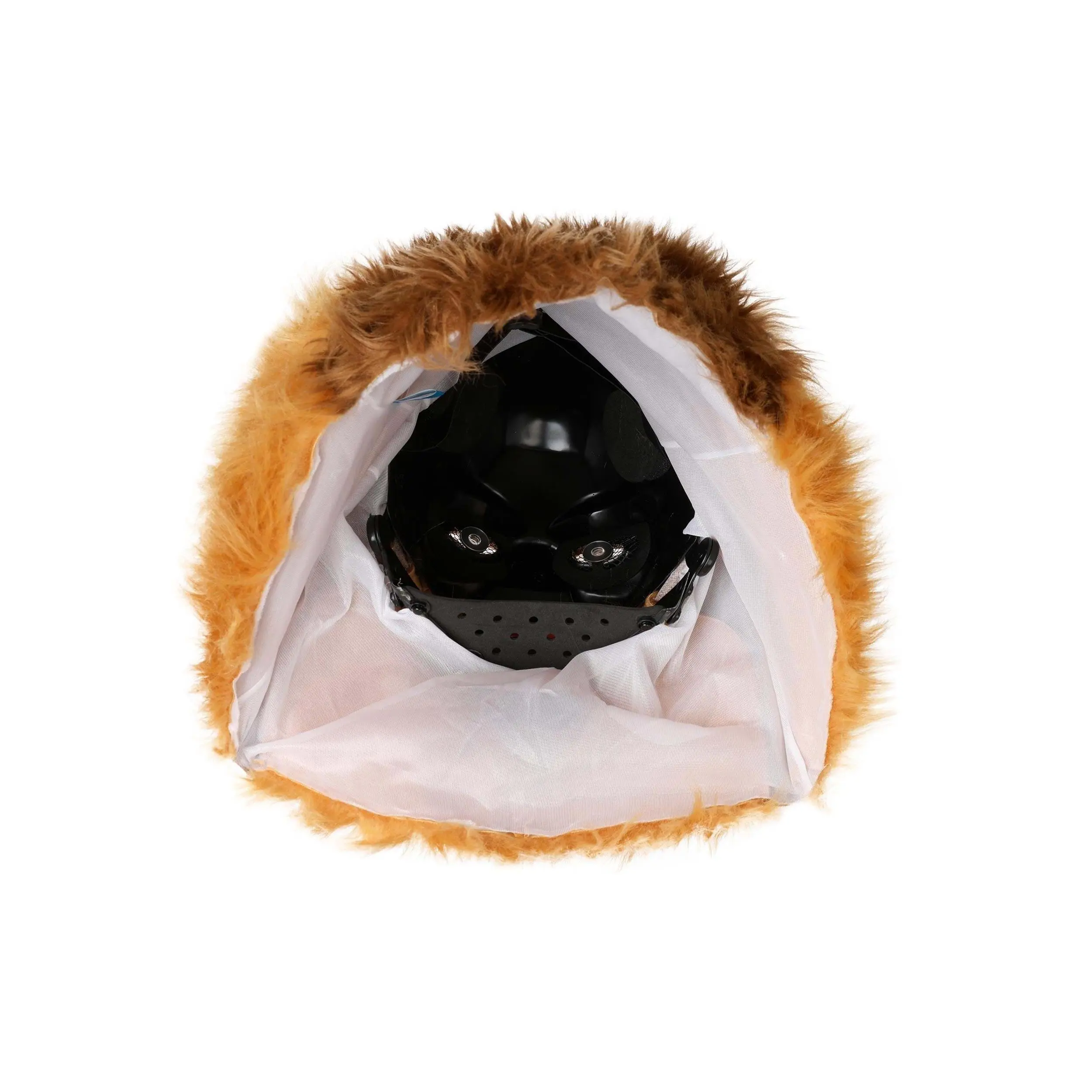 Actually, if you ask us, the tawny and brown shades of this Beast mask are quite charming. Just like the 1991 animated feature, this beast has softly curving horns, tan eyebrows, and a slight underbite. You don't even need to do your hair for the night. You can be sure that when you show up in the ensemble, you'll be the mane act!