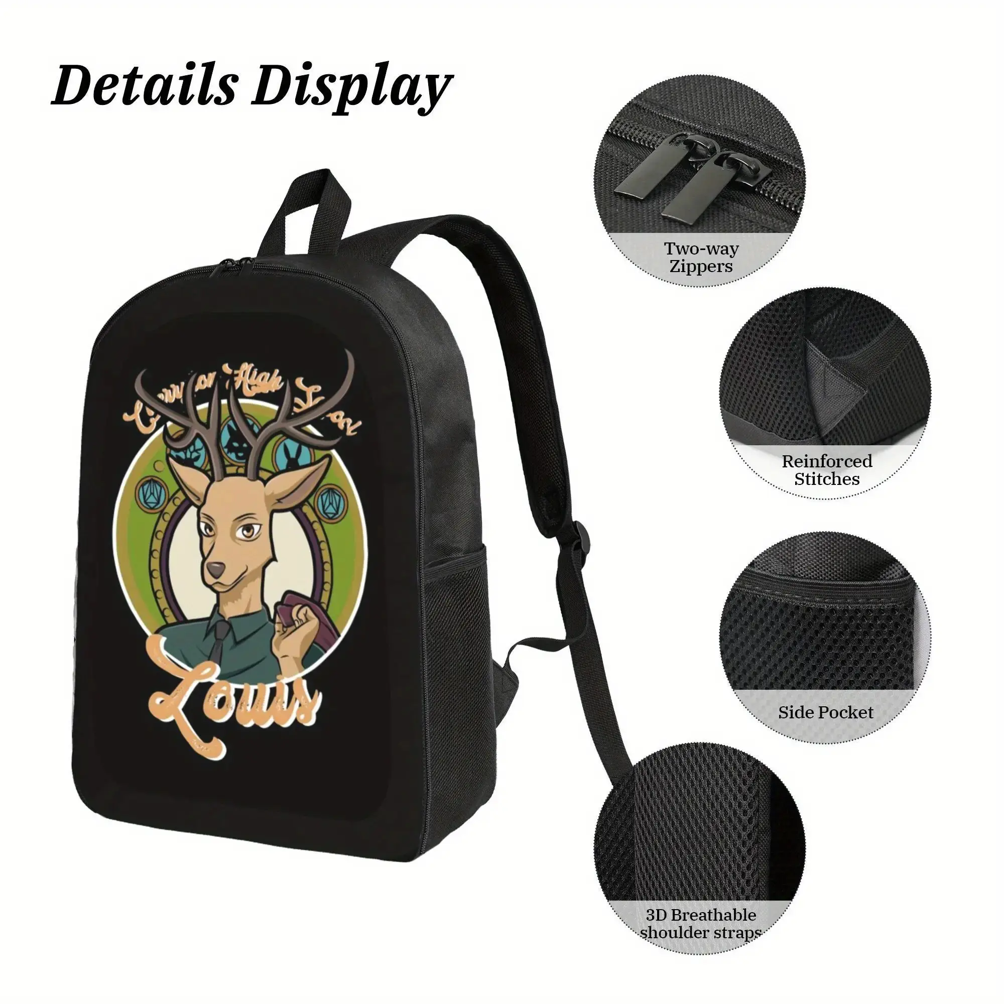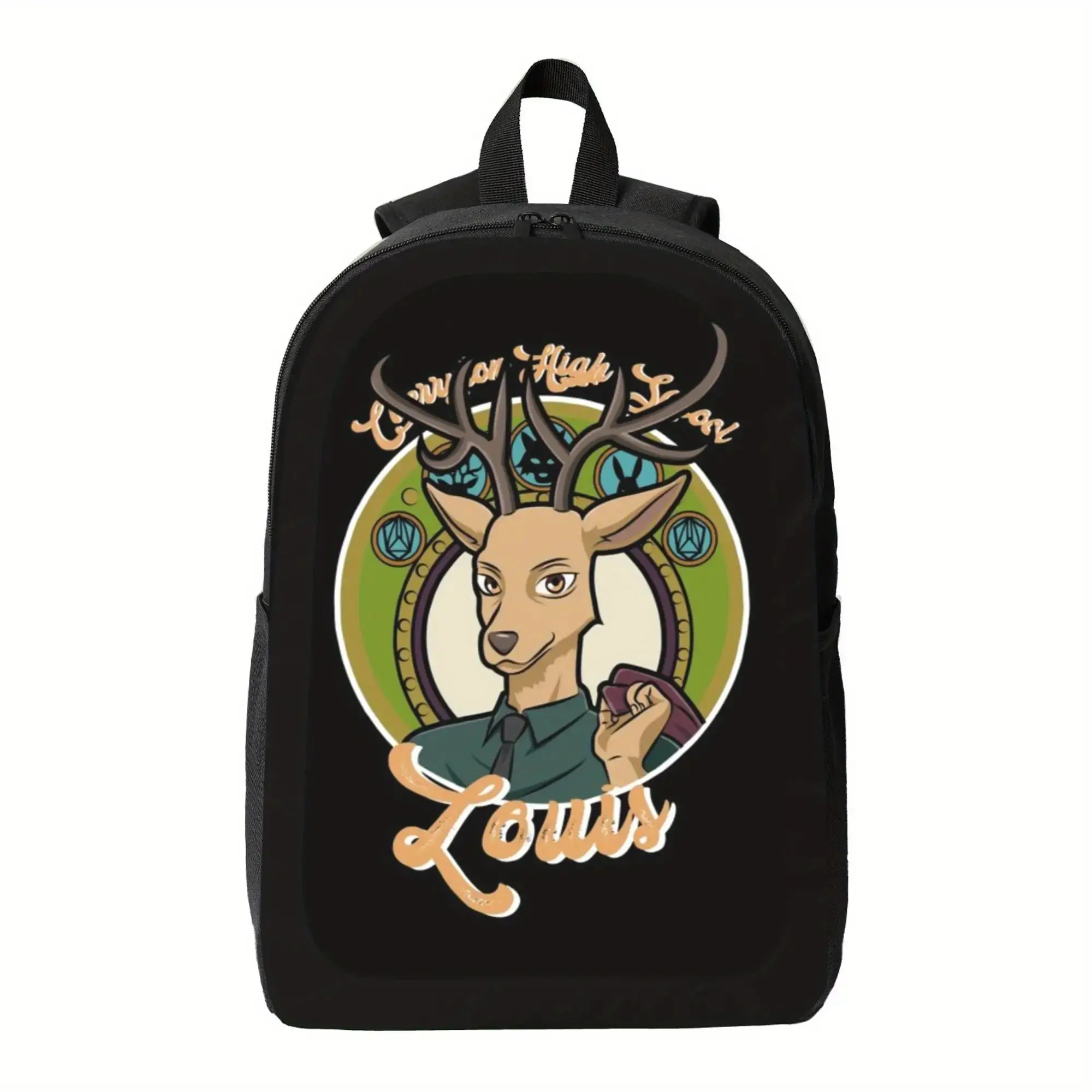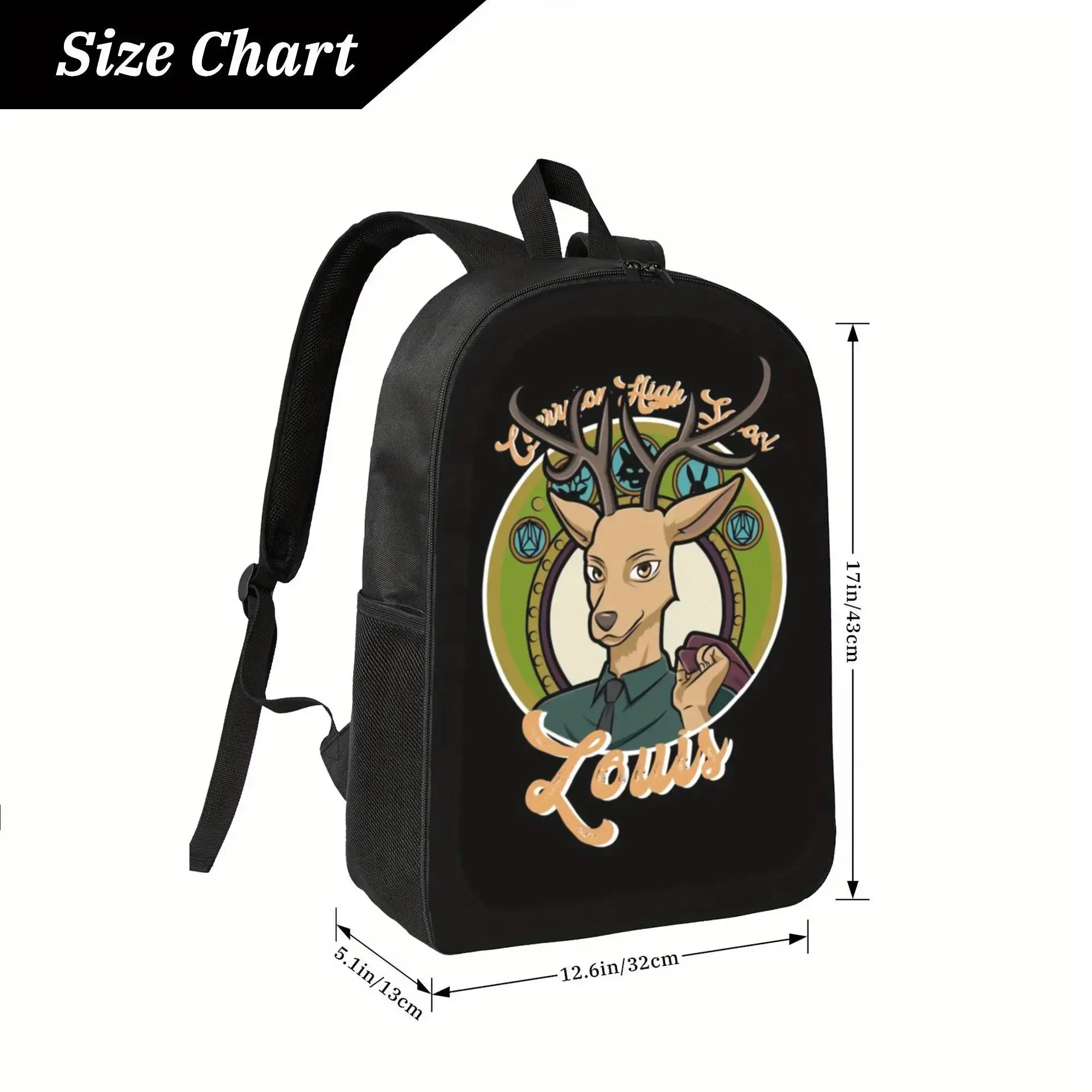 BEASTARS 2 LOUIS Print Lightweight Durable Travel Backpack - Adjustable Shoulder Straps, Zipper Closure, Laptop Compartment, Black with Deer & Floral Design, Perfect for Hiking, School, or Work, Backpack for Travel, Hiking Gear, Sporty Style, Secure Zippe