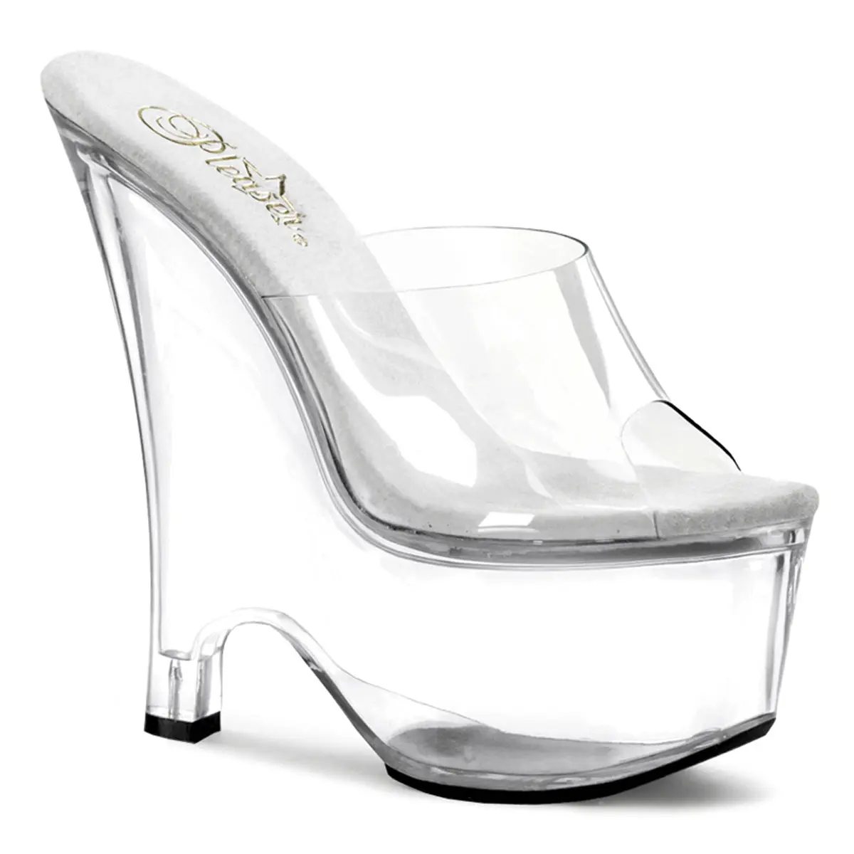 Step into effortless glamour with the Beau-601 Slides. Featuring an impressive 6 1/2" heel and a 2 3/4" platform wedge, these slides blend height with stability, making a daring yet poised statement. The clear design offers a modern, minimalist touch that pairs seamlessly with any outfit. Perfect for dancers, performers, or anyone looking to add a touch of elegance and height to their ensemble. Slip into the Beau-601 and let your style soar.