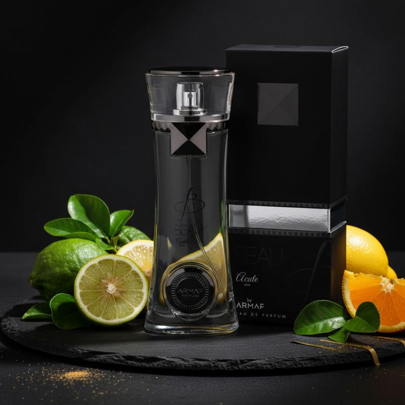 Beau Acute by Armaf is a Floral Woody Musk fragrance for men. Top notes are Bergamot, Orange, Petitgrain and Lemon; middle notes are Jasmine, Lavender, Rose, Sage and Rosemary; base notes are Musk, Vetiver, Sandalwood and Cedar.