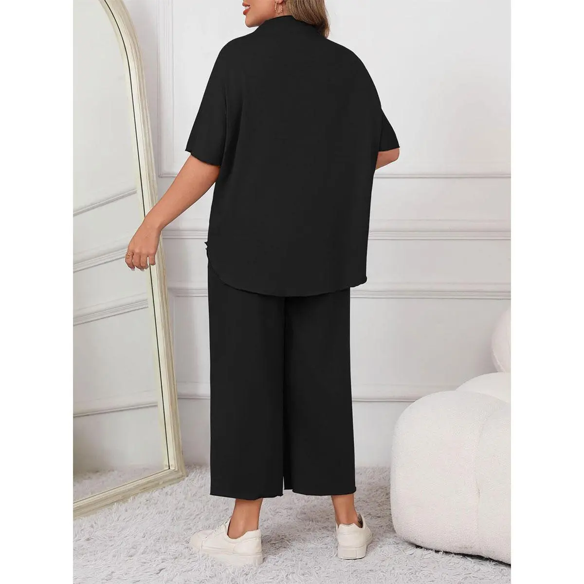 5. Imily Bela Curve 【L-5XL】Women's 2026 Plus Size 2 Piece Outfits 3/4 Batwing Sleeve Capelet Crew Neck Pullover Top Wide Leg Pants Lounge Set L-5XL