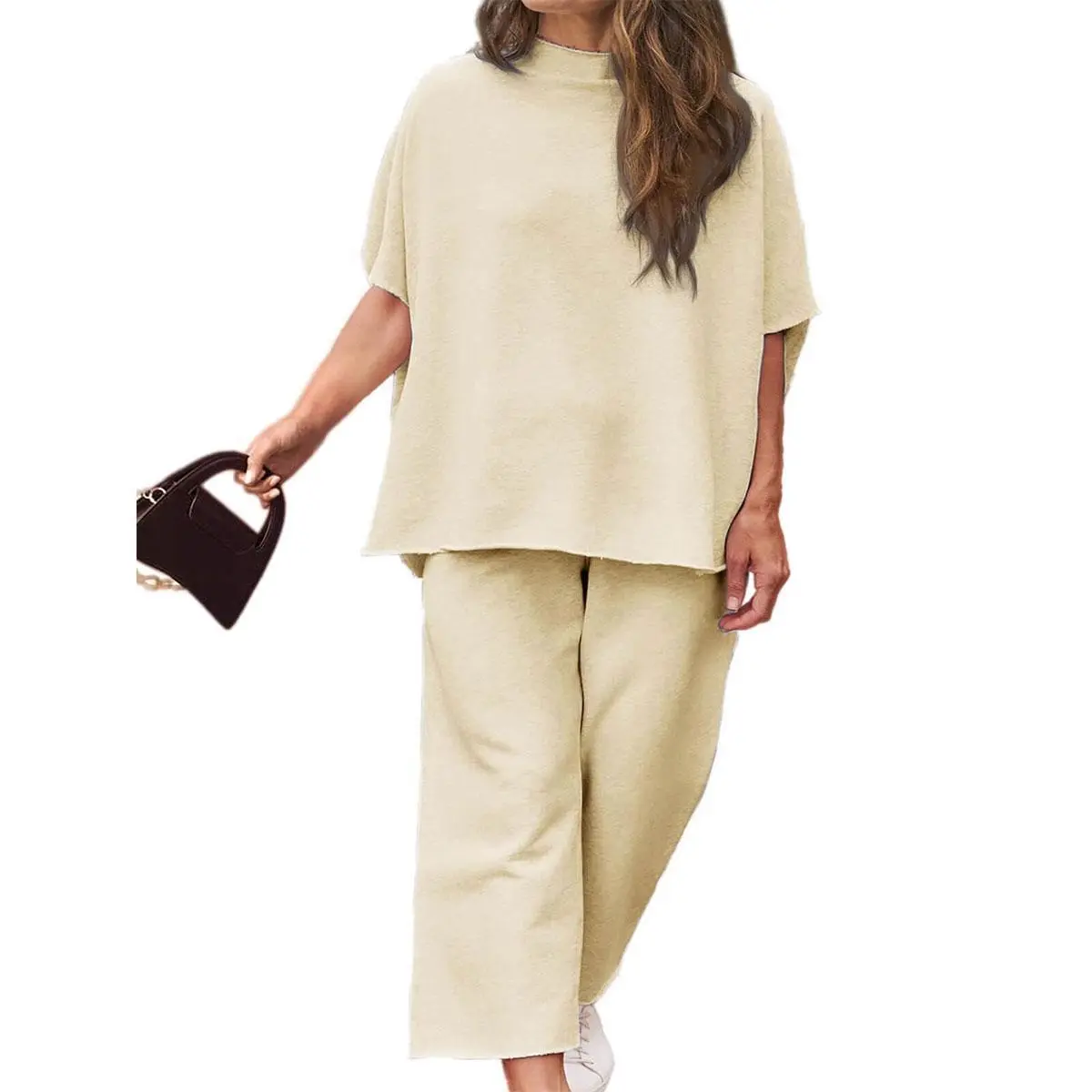 Imily Bela Curve 【L-5XL】Women's 2026 Plus Size 2 Piece Outfits 3/4 Batwing Sleeve Capelet Crew Neck Pullover Top Wide Leg Pants Lounge Set L-5XL