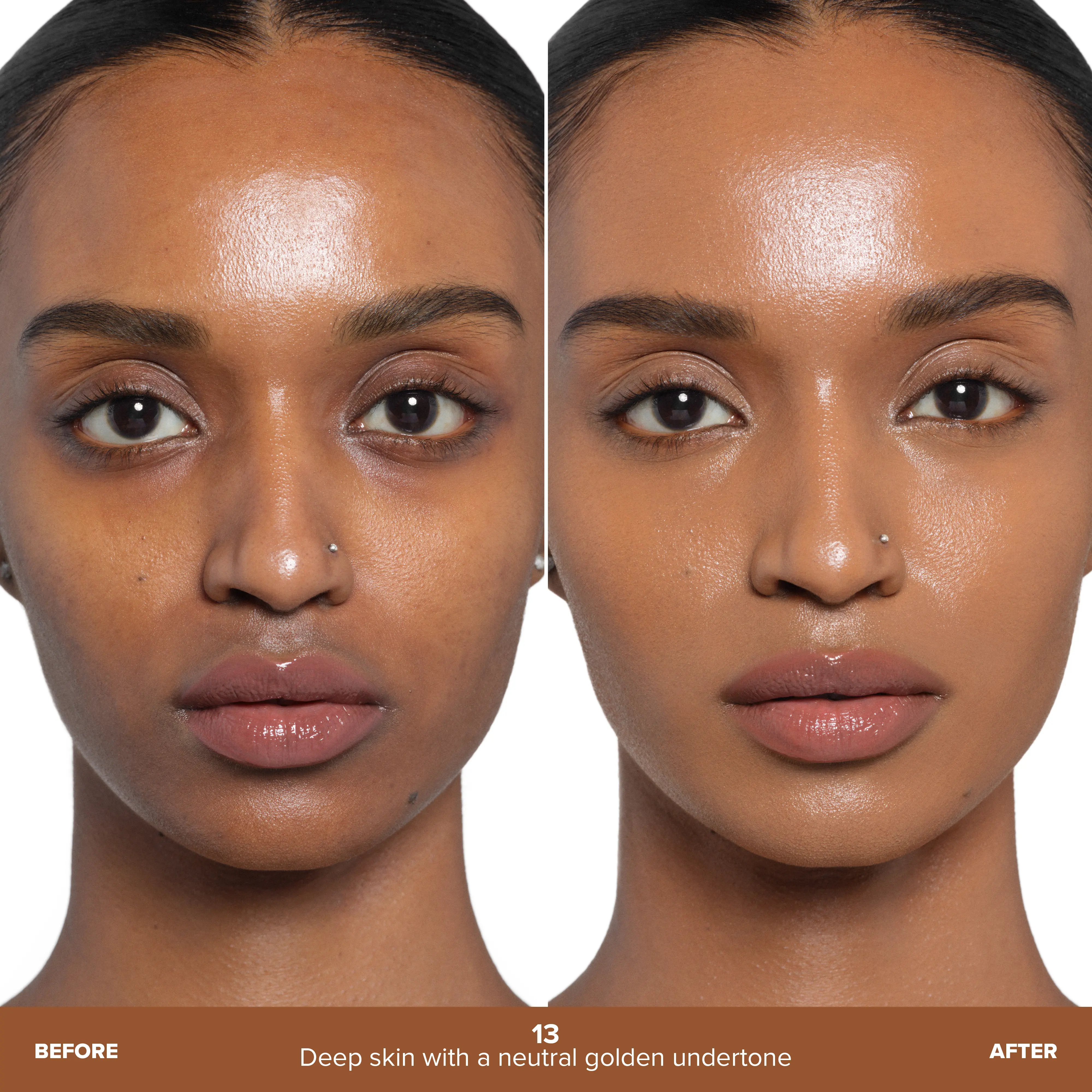 -Directly apply to bare skin, starting in the center of the face and blending outwards.
