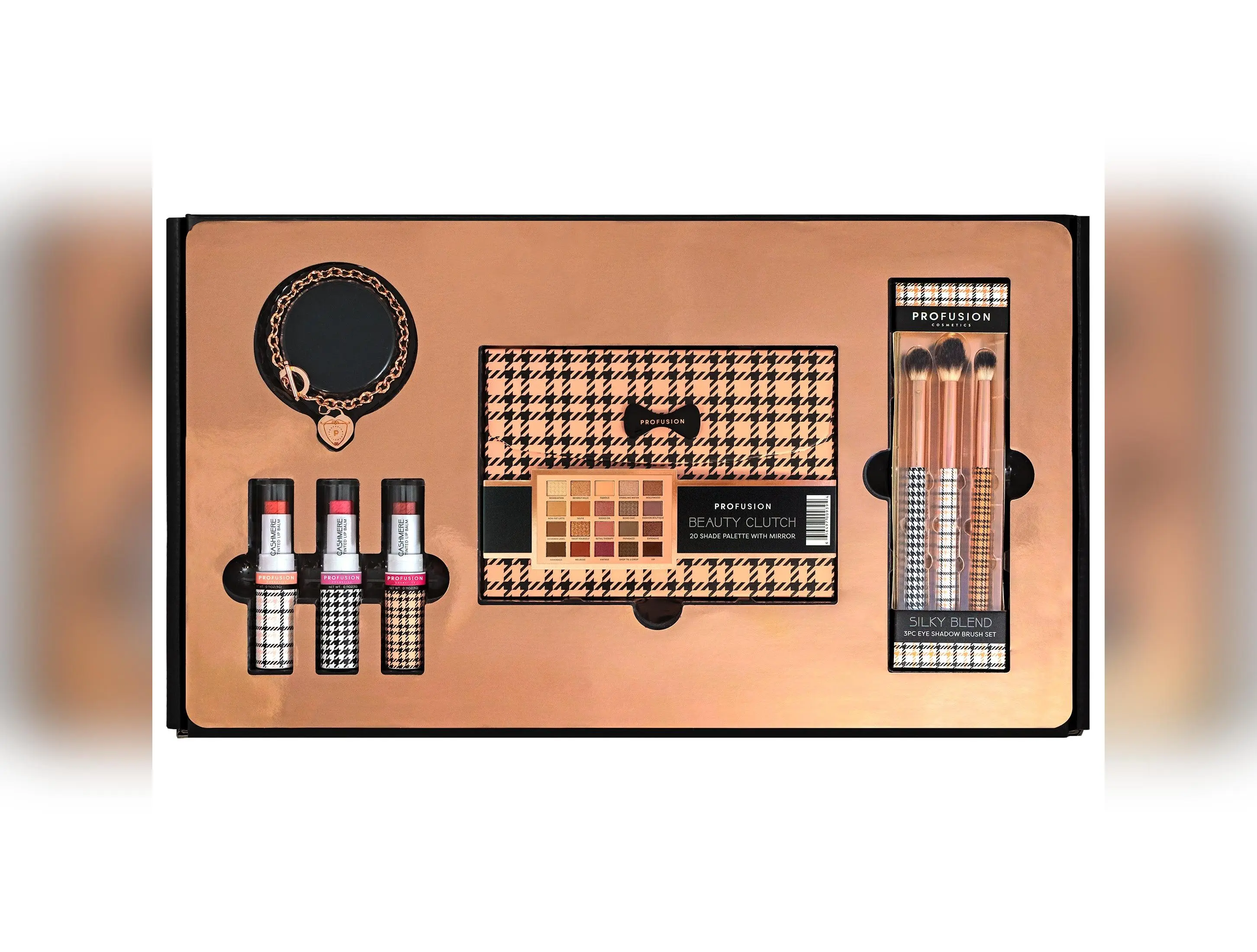 Start your day by pampering your lids with the 3pc brush set. The super soft synthetic bristles are perfectly designed to help you create and transform your looks while giving you a silky blend feel with every swipe. Follow along by taking a stroll down the multi-finish avenue with the clutch inspired 20-shade palette. The richly pigmented and bendable array of decadent hues are perfect for allowing you to create looks from natural to chic and everything in between. Finish off your day by nourishing your lips with a flawless flush of color using the cashmere tinted lip balm. Treat yourself with a limited-edition bracelet that is perfect for giving your look a timeless look. As with all Profusion products, everything included in this collection is cruelty-free, vegan, universally flattering and perfect for everyone from beginners to pros