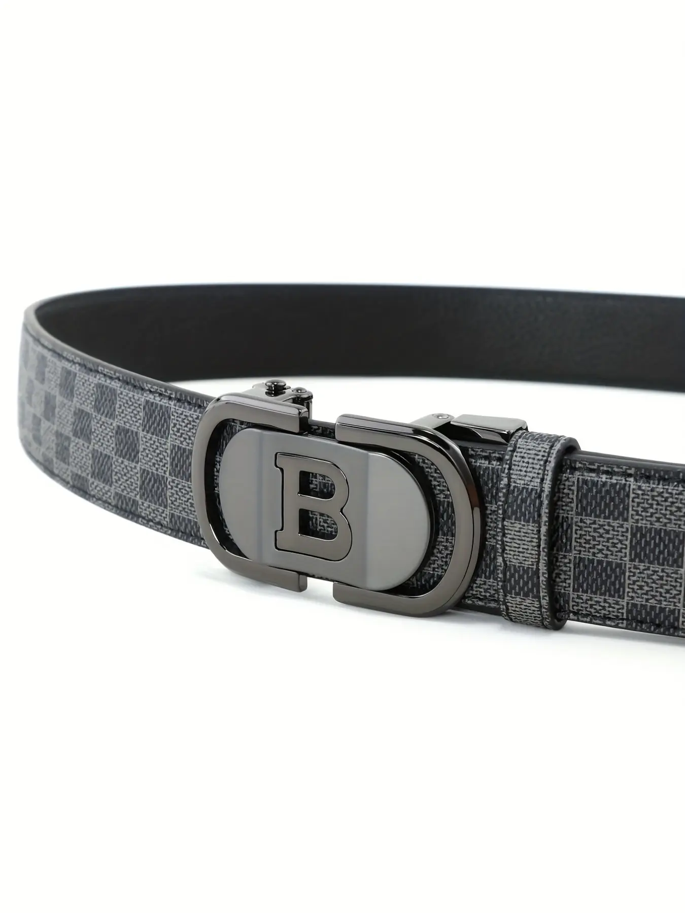 New Hollow Out B Letter Alloy Automatic Buckle Belt, Business Men's Pants Waistband, Retro Plaid Fashion Casual Belt, Fashionable Plaid Belt